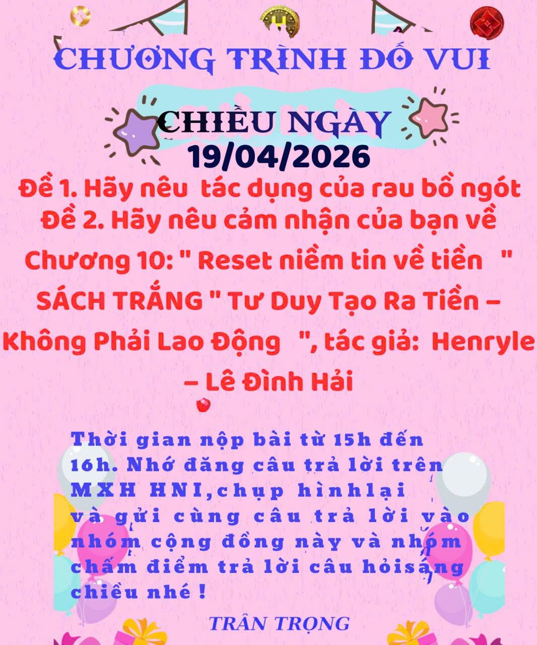 👉Đề 2: Cảm nhận Chương 10 “Reset niềm tin về tiền”