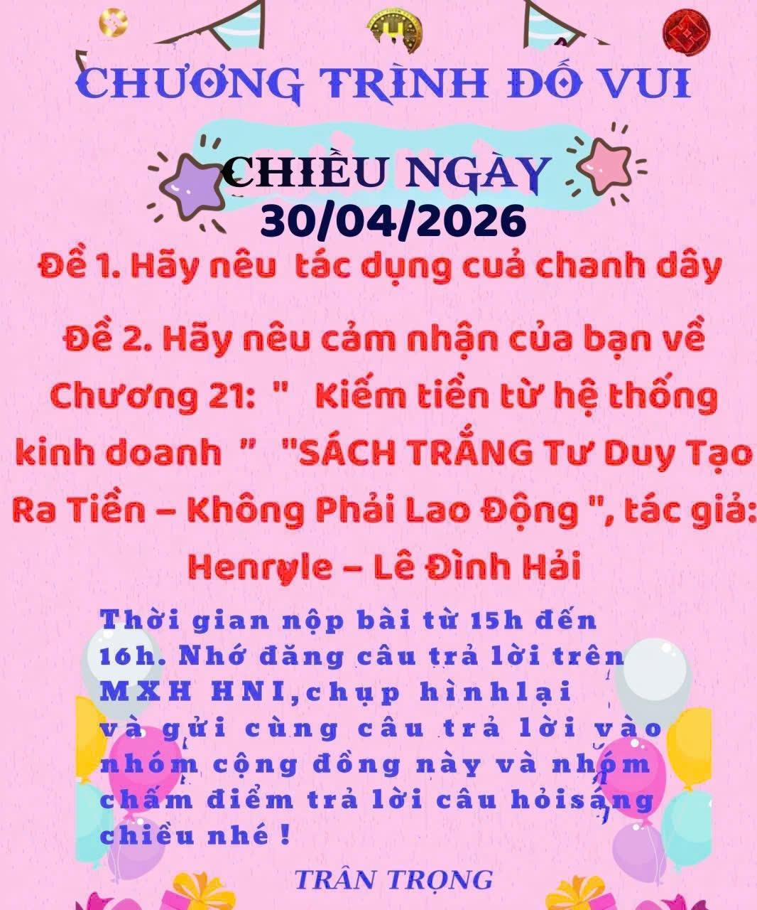 Nội dung Chương 21 giúp tôi hiểu rằng kiếm tiền bền vững không đến từ lao động đơn lẻ mà từ việc xây dựng hệ thống kinh doanh hiệu quả. Khi có hệ thống, thu nhập không còn phụ thuộc hoàn toàn vào thời gian cá nhân mà có thể nhân rộng giá trị. Điều này thay đổi tư duy từ “làm nhiều mới có tiền” sang “tạo hệ thống để tiền tự vận hành”. Tôi nhận ra tầm quan trọng của tư duy chiến lược, sự kiên trì và khả năng hợp tác. Đây là nền tảng để phát triển lâu dài, tự do tài chính và đóng góp nhiều giá trị hơn cho xã hội.