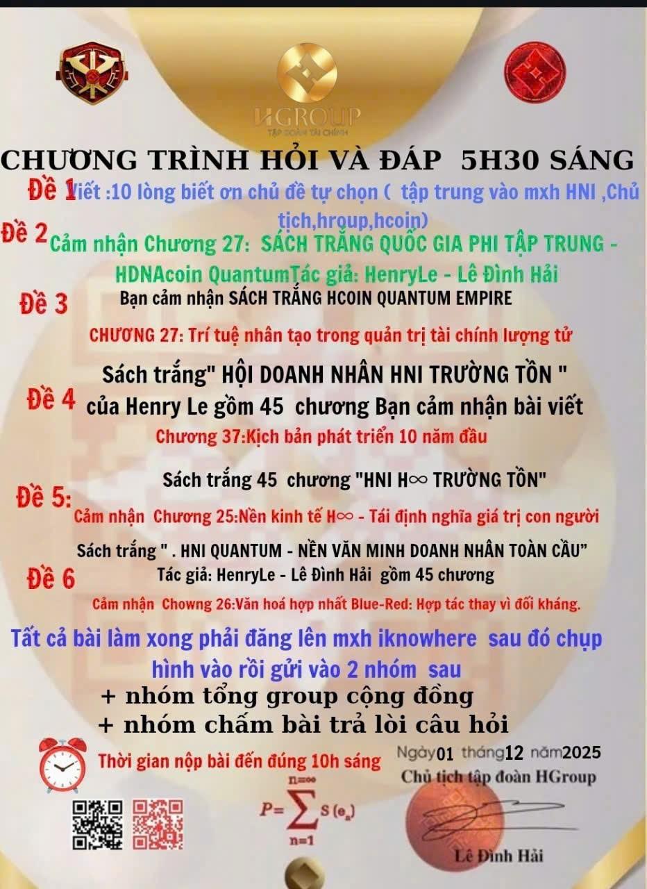 Chương 27 của Sách Trắng HCOIN Quantum Empire mở ra một viễn cảnh táo bạo về việc tích hợp trí tuệ nhân tạo vào quản trị tài chính lượng tử. Theo HenryLe, AI không chỉ giúp tối ưu hóa dữ liệu mà còn dự đoán, cân bằng và vận hành dòng tiền trong thời gian thực, tạo nên hệ thống tài chính tự chủ, minh bạch và không sai lệch. Tôi ấn tượng với cách tác giả mô tả sự hòa quyện giữa AI, blockchain và lượng tử, mở ra một nền kinh tế mới có khả năng giảm rủi ro, tăng hiệu suất và trao quyền lớn hơn cho cộng đồng trong mọi quyết định tài chính.