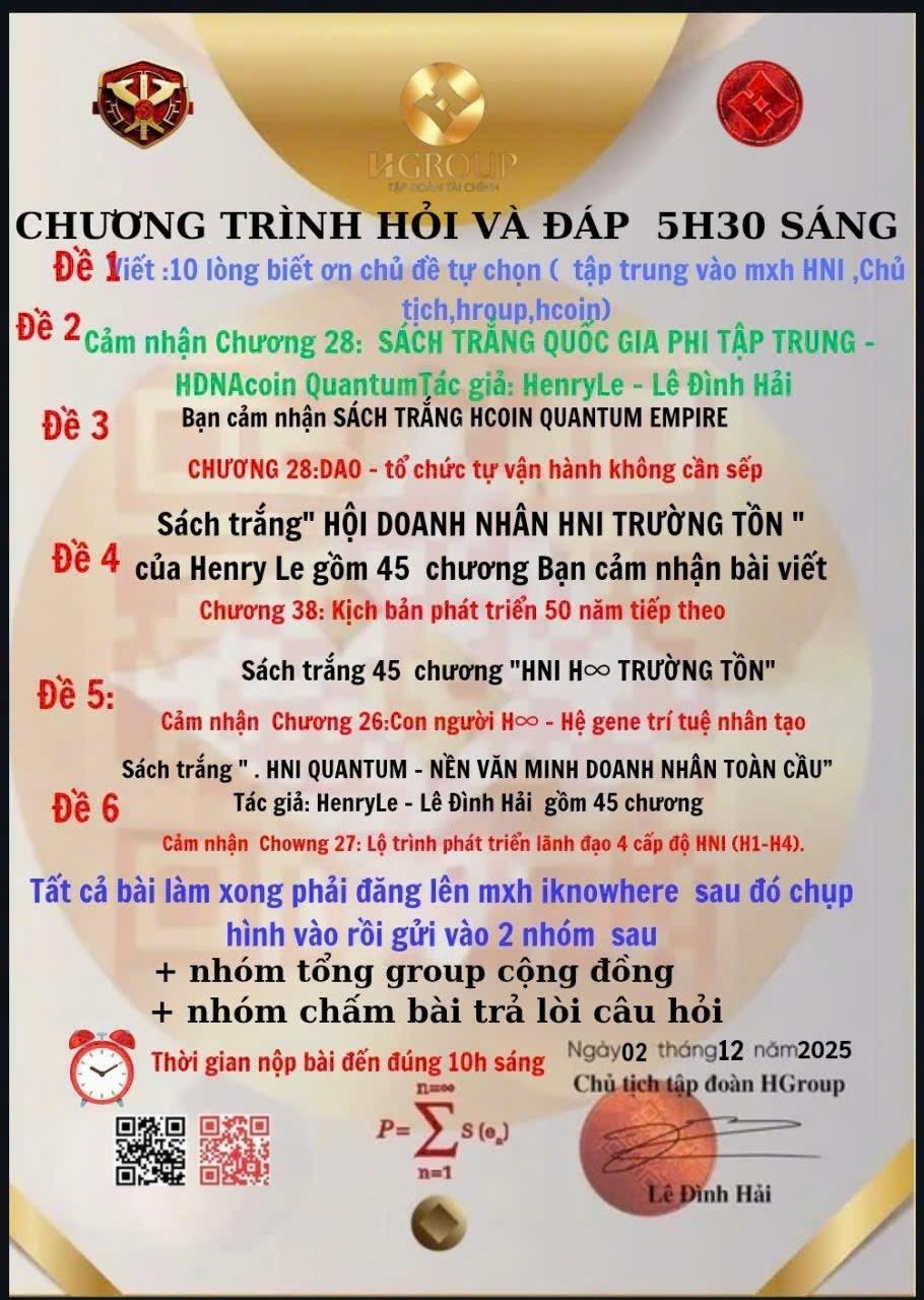 Nội dung Chương này minh họa một bước tiến đột phá trong quản trị: tổ chức không cần sếp, không cần trung gian, mà vận hành hoàn toàn dựa trên DAO và Smart Contract. Mọi quyết định, phân bổ lợi nhuận, biểu quyết đều minh bạch tuyệt đối trên blockchain, quyền lực được phân tán công bằng cho tất cả thành viên. HNI DAO biến mỗi cá nhân thành công dân tài chính chủ động, góp phần xây dựng hệ sinh thái HCOIN toàn dân. Đây là minh chứng sống cho khả năng tổ chức tự vận hành, tốc độ, minh bạch và công bằng, đưa kinh tế phi tập trung vào thực tiễn.