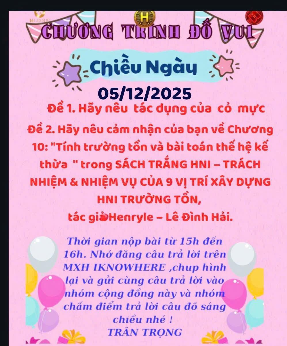 CÂU ĐỐ BUỔI CHIỀU NGÀY 5/12/2025