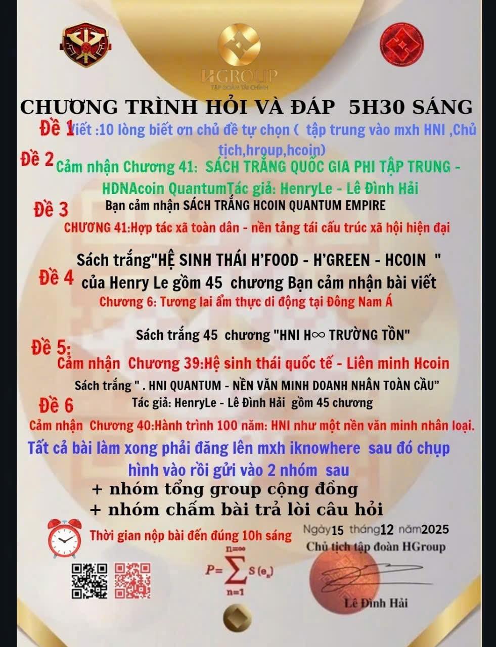 Chương 41 mang đến một góc nhìn đột phá về mô hình quốc gia phi tập trung, nơi quyền lực được phân bổ công bằng và minh bạch. HDNAcoin Quantum không chỉ là công cụ tài chính mà là nền tảng quản trị xã hội mới. Tôi cảm nhận rõ tư duy vượt thời đại của tác giả khi kết hợp công nghệ, đạo đức và con người. Chương sách khẳng định rằng giá trị thật không nằm ở sự kiểm soát, mà ở sự đồng thuận và niềm tin cộng đồng. Đây là bước tiến quan trọng hướng đến một nền văn minh tự do, bền vững và nhân bản.