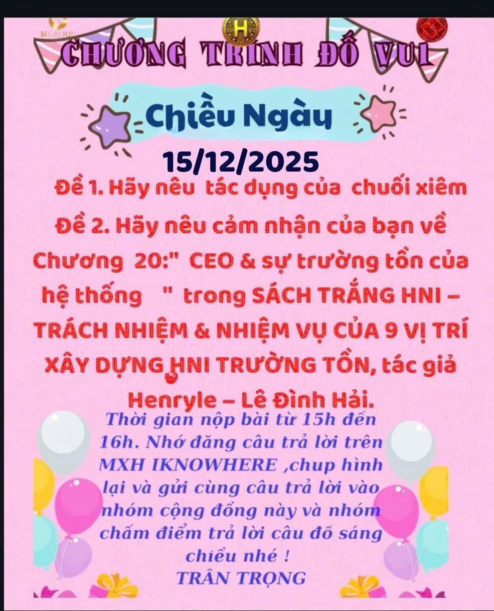 CẢM NHẬN CHƯƠNG 20”CEO VA SỰ TRƯỜNG TỒN CỦA HỆ THỐNG HNI”