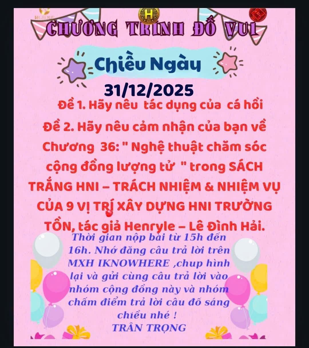 👉 Kết luận: Cá hồi không chỉ là món ăn ngon mà còn là “siêu thực phẩm” giúp bảo vệ tim mạch, não bộ, làn da và nâng cao sức khỏe toàn diện. Đề 2: Cảm nhận Chương 36 – Nghệ thuật chăm sóc cộng đồng lượng tử