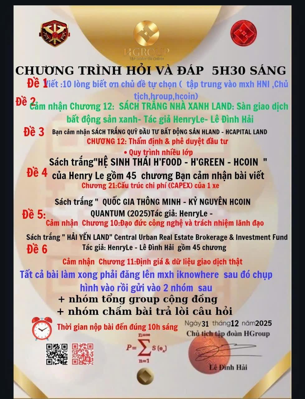 Cảm nhận Đề 3 – Chương 12: Thẩm định & phê duyệt đầu tư Chương sách này thể hiện rất rõ triết lý đầu tư kỷ luật và trưởng thành của HLand – HCapital Land. Thẩm định không được xem là thủ tục hình thức, mà là “hệ miễn dịch” bảo vệ vốn – một cách ví von rất chính xác trong bối cảnh thị trường nhiều biến động và cảm xúc chi phối.