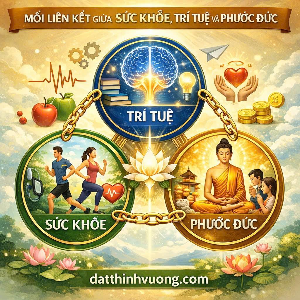 👉Trong hành trình làm người, sức khỏe, trí tuệ và phước đức không tồn tại riêng lẻ mà đan cài, nâng đỡ và nuôi dưỡng lẫn nhau. Khi một yếu tố được chăm sóc đúng đắn, hai yếu tố còn lại cũng âm thầm lớn lên. Ngược lại, nếu một yếu tố bị xem nhẹ, sự mất cân bằng sẽ sớm lan rộng đến toàn bộ đời sống.
