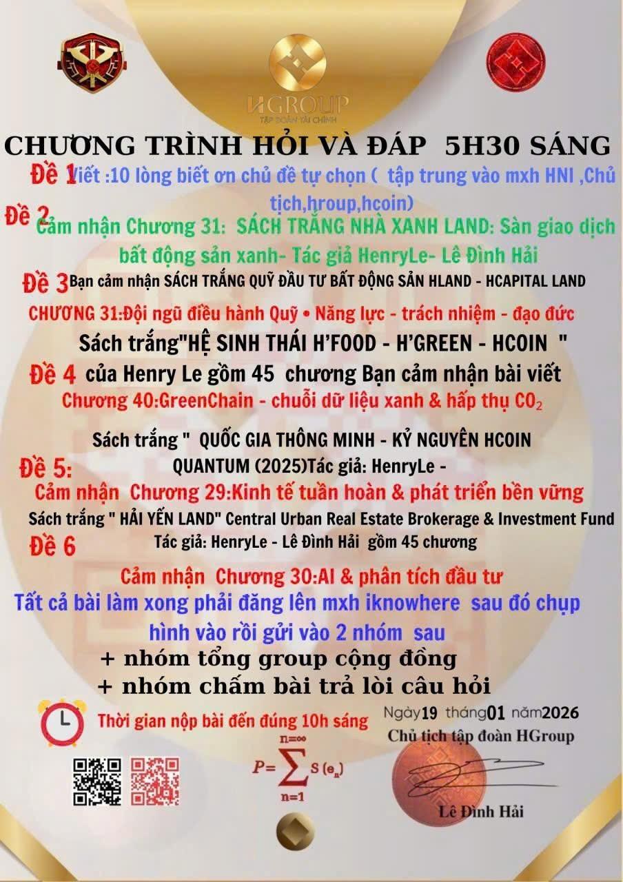 Chương 40: GREENCHAIN – Chuỗi dữ liệu Xanh và hấp thụ CO₂:Chương 40 giới thiệu GREENCHAIN như một hệ thống dữ liệu xanh đột phá, liên kết thông tin về hấp thụ CO₂ minh bạch và hiệu quả. Tác giả làm rõ vai trò của công nghệ trong việc ghi nhận, kiểm chứng các hoạt động giảm phát thải, từ đó thúc đẩy các giải pháp bền vững. GREENCHAIN không chỉ là công cụ đo lường mà còn truyền cảm hứng cộng đồng hướng đến mục tiêu môi trường chung.