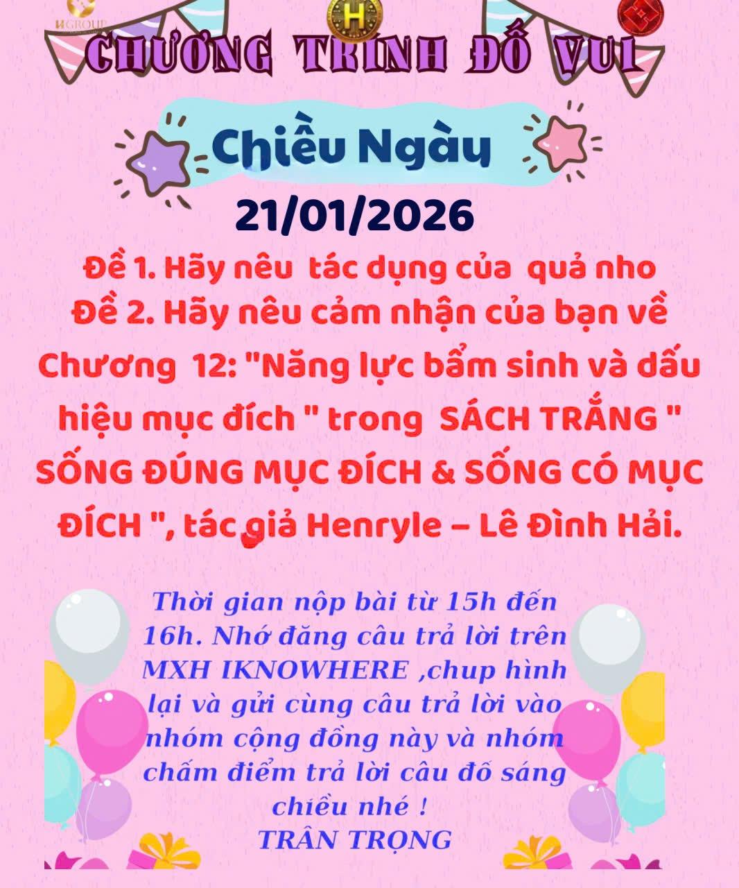 👉Đề 1. Tác dụng của quả nho
