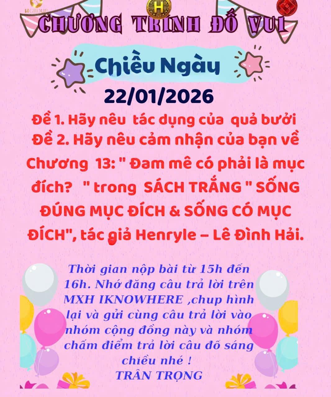 Chương 13 trong SÁCH TRẮNG – Sống đúng mục đích & sống có mục đích giúp tôi hiểu rõ sự khác biệt giữa đam mê và mục đích sống. Tác giả Henryle – Lê Đình Hải chỉ ra rằng đam mê có thể thay đổi theo thời gian, còn mục đích sống mang tính bền vững và định hướng lâu dài. Đam mê chỉ thật sự có giá trị khi được đặt trong mục đích đúng đắn, phục vụ cho giá trị cá nhân và cộng đồng. Chương sách giúp tôi nhìn lại bản thân, biết chọn lọc đam mê và sống tỉnh thức hơn trên hành trình cuộc đời.
