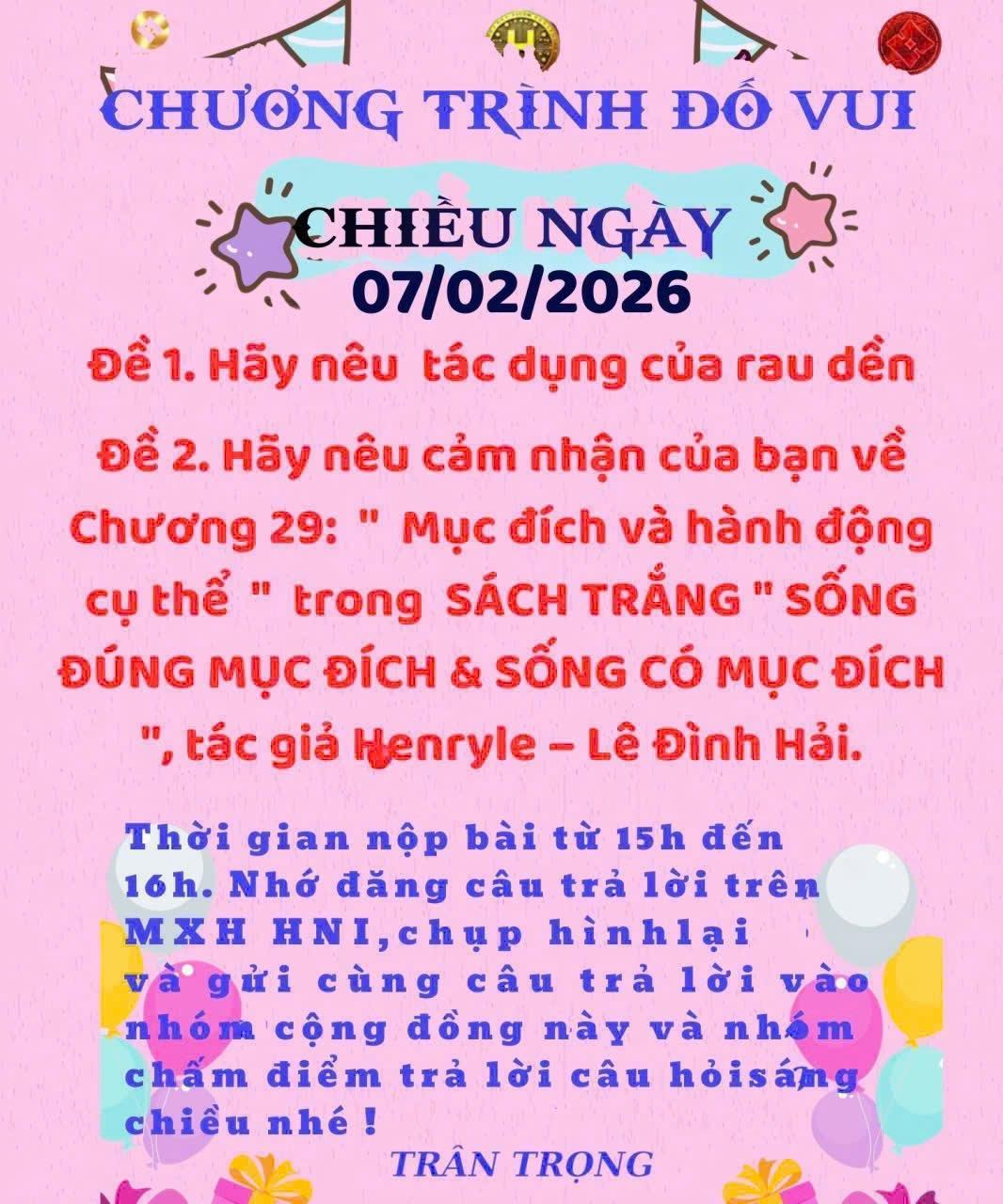 CÂU ĐỐ BUỔI CHIỀU NGÀY 07/02/2026