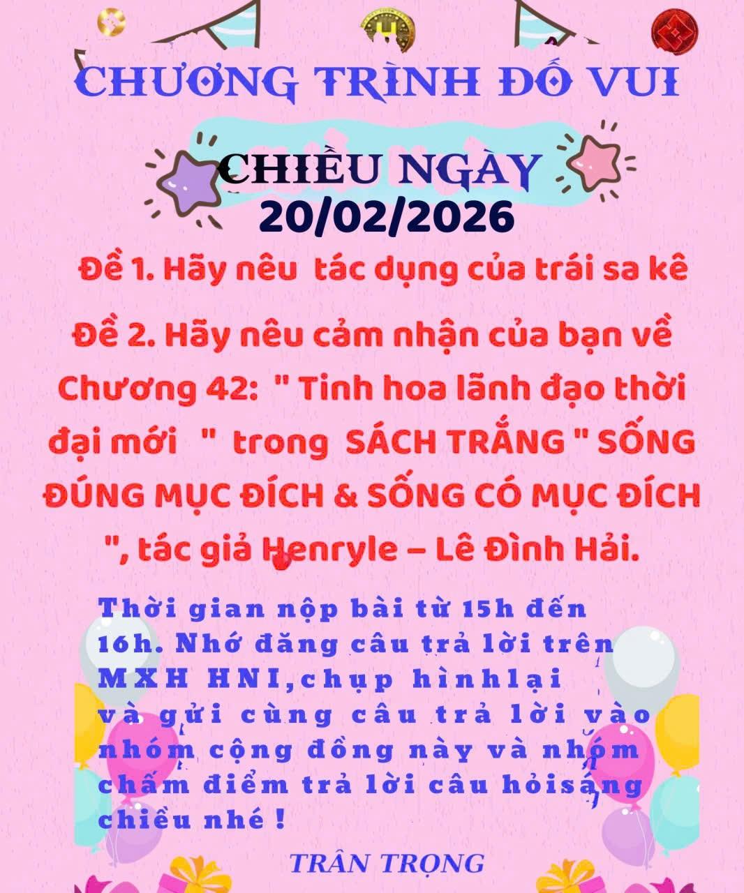 CÂU ĐỐ BUỔI CHIỀU NGÀY 20-2