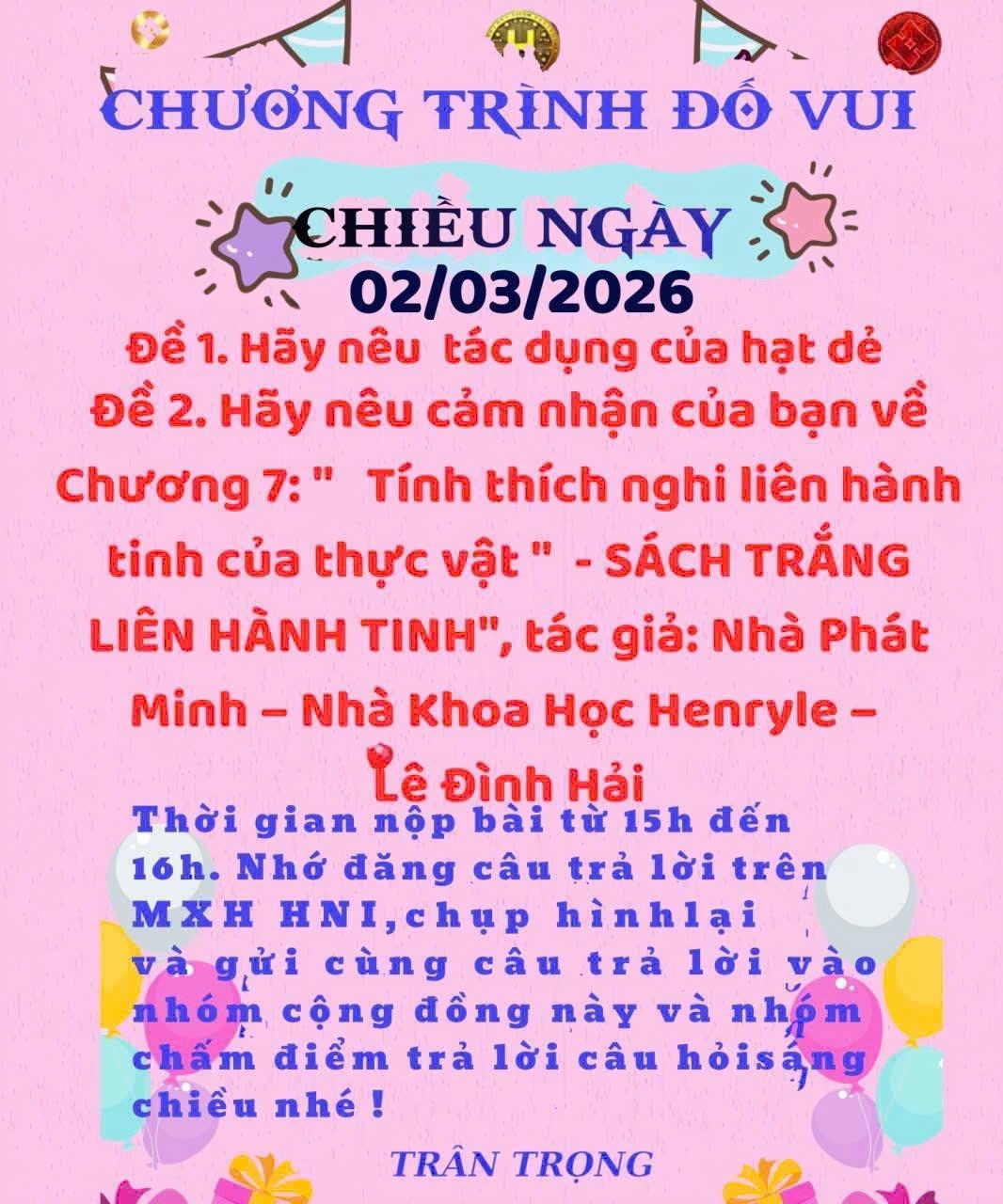 Nội dung Chương 7 trong SÁCH TRẮNG LIÊN HÀNH TINH của tác giả Henryle – Lê Đình Hải mở ra góc nhìn mới về khả năng thích nghi kỳ diệu của thực vật trong môi trường ngoài Trái Đất. Nội dung gợi lên khát vọng mở rộng không gian sinh tồn của nhân loại thông qua nông nghiệp liên hành tinh. Tôi ấn tượng với tư duy kết hợp khoa học sinh học, công nghệ và tầm nhìn tương lai. Chương sách không chỉ nói về kỹ thuật trồng trọt mà còn truyền cảm hứng về trách nhiệm bảo tồn sự sống và sáng tạo vì tương lai bền vững của nhân loại.