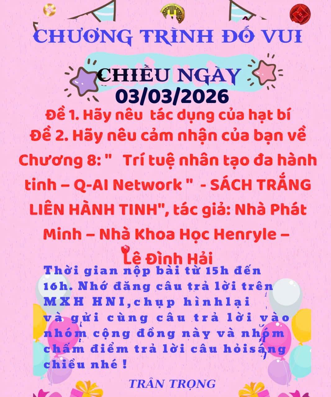 👉Đề 2: Cảm nhận Chương 8 “Trí tuệ nhân tạo đa hành tinh - Q-AI Network”
