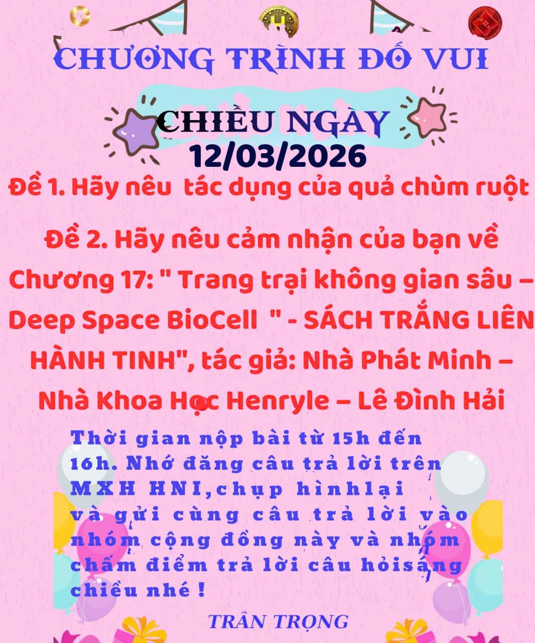👉Đề 2: Cảm nhận về Chương 17 – “Trang trại không gian sâu - Deep Space BioCell”