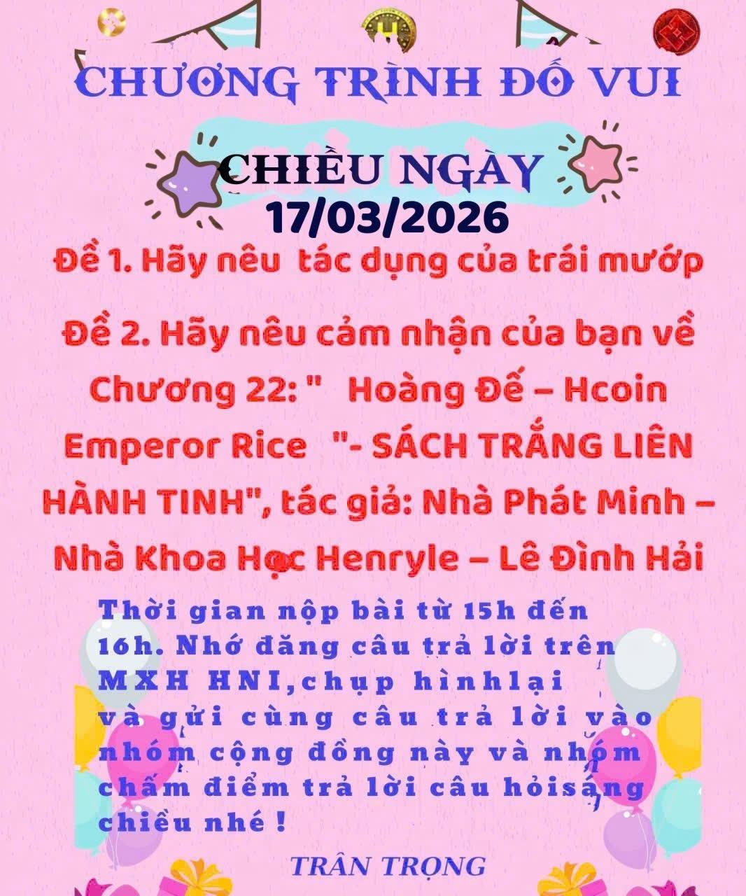 👉Đề 2: Cảm nhận về Chương 22 “Hoàng Đế - Hcoin Emperor Rice”