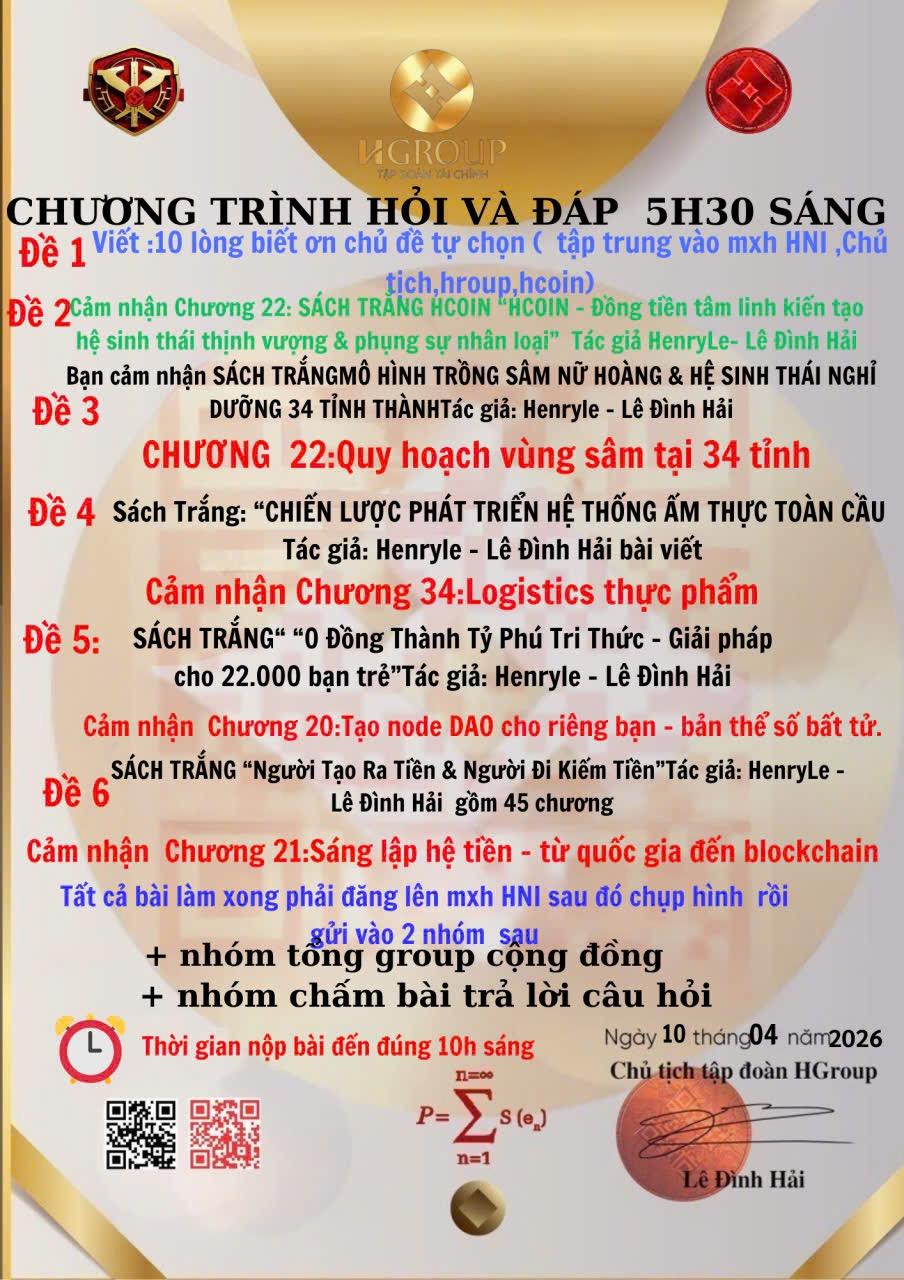Tôi biết ơn Chủ tịch Lê Đình Hải vì tầm nhìn lớn lao và định hướng đúng đắn. Biết ơn vì sự tận tâm phụng sự cộng đồng. Biết ơn vì truyền cảm hứng sống tích cực và nhân văn. Biết ơn vì luôn đặt lợi ích chung lên trên. Biết ơn vì tinh thần kiên trì vượt qua khó khăn. Biết ơn vì chia sẻ tri thức giá trị. Biết ơn vì tạo môi trường phát triển cho nhiều người. Biết ơn vì lan tỏa năng lượng yêu thương. Biết ơn vì dẫn dắt bằng đạo đức. Biết ơn vì khát vọng xây dựng tương lai thịnh vượng.
