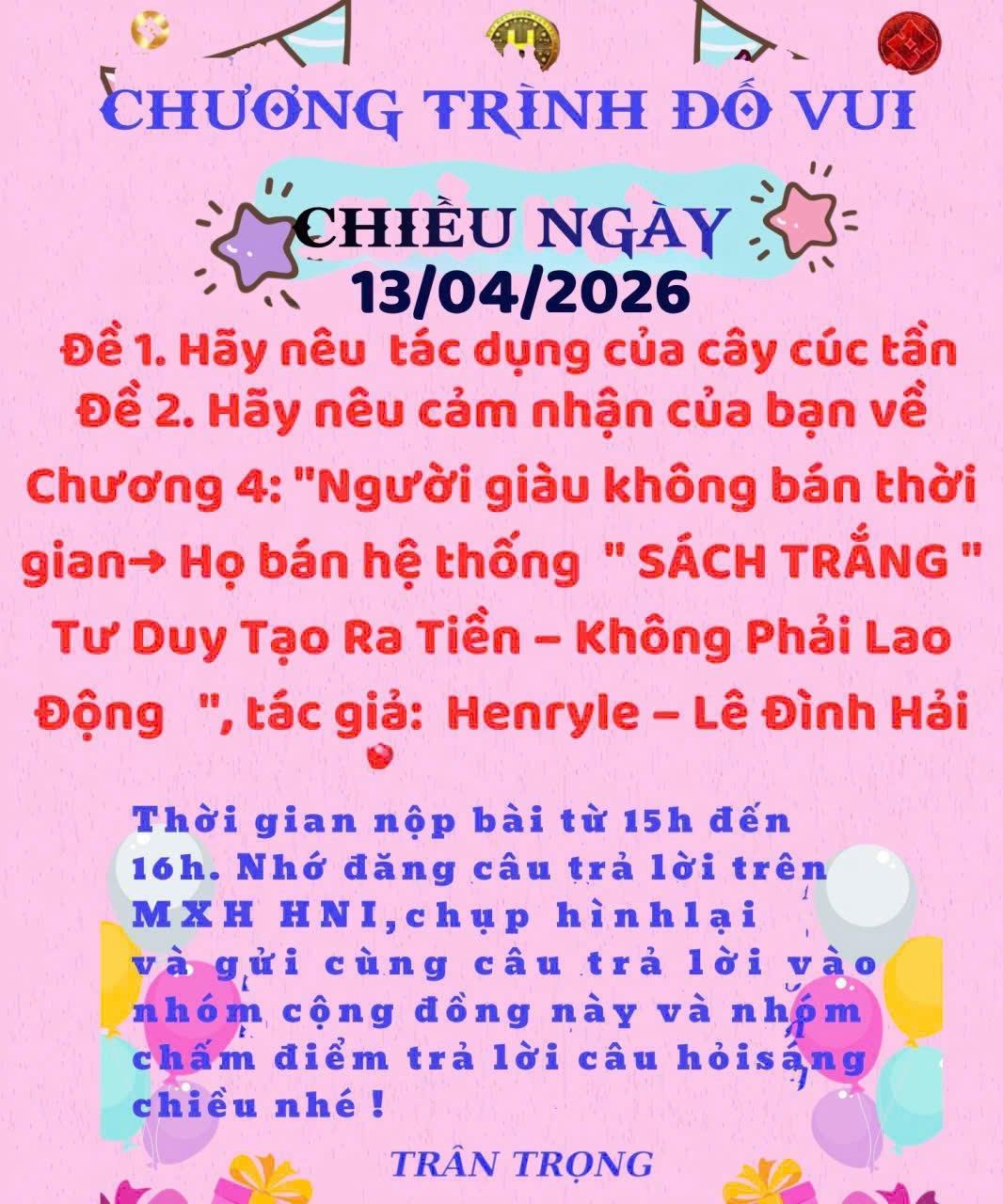 TRẢ LỜI CÂU ĐỐ BUỔI CHIỀU