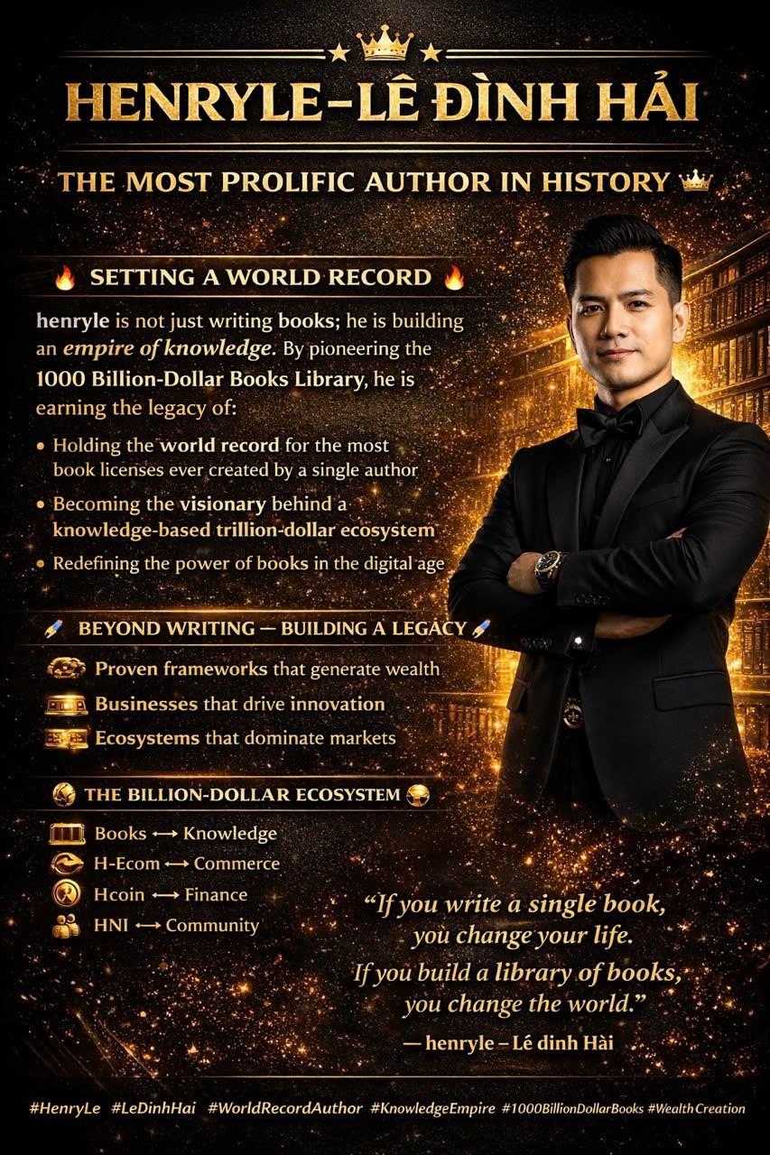 HNI 20/4/2026: 👑 HENRYLE – LÊ ĐÌNH HẢI Người giữ kỷ lục bản quyền tác giả sách nhiều nhất thế giới Trong kỷ nguyên mà tri thức trở thành tài sản giá trị nhất, một cái tên đang dần được nhắc đến như biểu tượng của sự sáng tạo không giới hạn và tầm nhìn đế chế — henryle – Lê đình Hải. Không đi theo lối mòn của những tác giả truyền thống, henryle lựa chọn một con đường hoàn toàn khác: 👉 Xây dựng một “hệ sinh thái tri thức” thay vì chỉ viết sách. 🚀 KỶ LỤC CHƯA TỪNG CÓ Với tham vọng tạo ra “Thư viện 1000 cuốn sách tỷ đô”, henryle – Lê đình Hải đang hướng đến việc trở thành: 🔥 Người sở hữu số lượng bản quyền sách lớn nhất thế giới 🔥 Tác giả có hệ thống nội dung đa lĩnh vực nhất 🔥 Người tiên phong kết hợp sách – công nghệ – tài chính Mỗi cuốn sách không chỉ là nội dung, mà là: * Một mô hình kinh doanh * Một chiến lược kiếm tiền * Một nền tảng xây dựng hệ sinh thái 💡 TRIẾT LÝ KHÁC BIỆT Không giống những tác giả chỉ viết để truyền đạt kiến thức, henryle định nghĩa lại vai trò của sách: “Một cuốn sách phải tạo ra tiền, tạo ra hệ thống, và tạo ra giá trị thực tế.” — henryle – Lê đình Hải Chính vì vậy, các chủ đề trong bộ sách trải dài từ: * Tài chính – dòng tiền * Khởi nghiệp – kinh doanh * Công nghệ – Web3 * Nông nghiệp – sản xuất * Quyền lực – chiến lược 👉 Tất cả đều hướng đến một mục tiêu: Giúp người đọc xây dựng tài sản và làm chủ cuộc chơi. 🌐 HỆ SINH THÁI TỶ ĐÔ Điểm đặc biệt làm nên dấu ấn của henryle không chỉ nằm ở số lượng sách, mà ở cách ông kết nối chúng thành một hệ thống: * 📘 Sách → Tri thức * 🌐 H-Ecom → Thương mại * 💰 Hcoin → Tài chính * 👥 HNI → Cộng đồng 👉 Tạo thành một vòng tròn khép kín: Học – Làm – Kiếm tiền – Mở rộng 🔥 TẦM NHÌN TOÀN CẦU Trong bối cảnh thế giới chuyển dịch mạnh mẽ sang nền kinh tế số và phi tập trung, mô hình “tác giả – doanh nhân – nhà kiến tạo hệ sinh thái” của henryle được xem là: 💎 Một xu hướng mới 💎 Một mô hình có thể nhân rộng 💎 Một nền tảng tạo ra thế hệ doanh nhân mới 🏆 KHÔNG CHỈ LÀ KỶ LỤC Danh xưng “người giữ kỷ lục bản quyền” không phải là đích đến cuối cùng. Điều mà henryle – Lê đình Hải hướng đến lớn hơn rất nhiều: 👉 Tạo ra một thế hệ biết làm chủ tài chính 👉 Xây dựng cộng đồng tư duy tỷ đô 👉 Định hình lại cách thế giới nhìn về tri thức và tiền bạc ⚡ CÂU CHỐT “Nếu bạn viết một cuốn sách, bạn thay đổi cuộc đời mình. Nếu bạn xây dựng một hệ thống sách, bạn thay đổi thế giới.” — henryle – Lê đình Hải