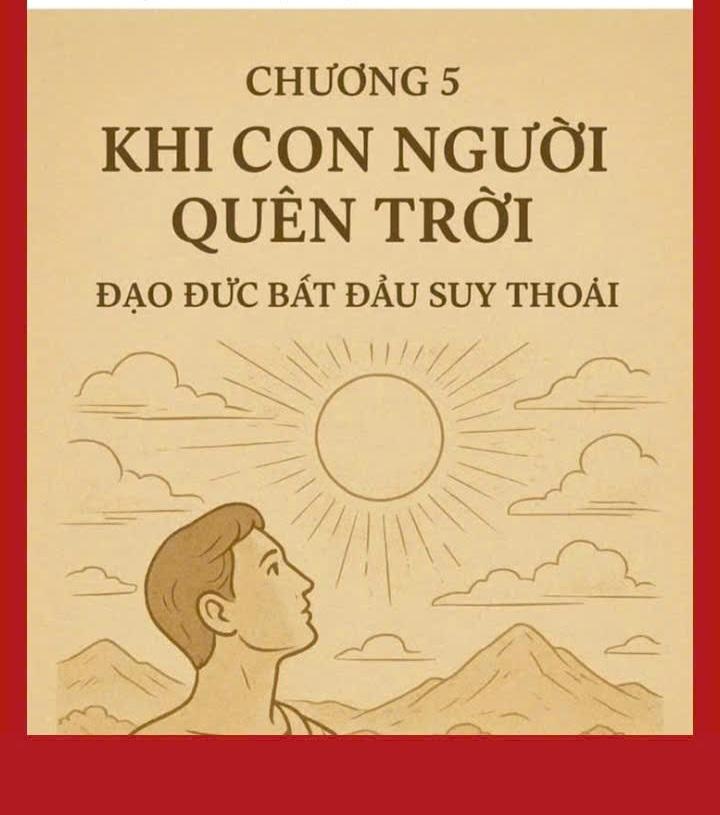 HNI 27/10 - CHƯƠNG 5: KHI CON NGƯỜI QUÊN TRỜI – ĐẠO ĐỨC BẮT ĐẦU SUY THOÁI 1. GỐC CỦA ĐẠO ĐỨC NẰM TRONG TRỜI Từ ngàn xưa, mọi nền văn minh lớn đều khởi đầu bằng niềm kính ngưỡng đối với Trời – với một trật tự tối cao, vượt lên trên cái tôi nhỏ bé của con người. Người xưa gọi đó là Thiên đạo – đạo của Trời, là quy luật vận hành vô hình nhưng bất biến chi phối vạn vật. Từ Thiên đạo ấy mà hình thành Nhân đạo, là đạo làm người, là chuẩn mực đạo đức để mỗi cá nhân sống hài hòa với cộng đồng và với chính lương tâm mình. Khi con người còn biết nhìn lên Trời mà soi lại lòng mình, đạo đức vẫn còn sáng. Khi họ biết sợ Trời, họ không dám làm điều trái với lẽ tự nhiên. Khi họ biết yêu Trời, họ biết thương người. Nhưng khi Trời bị quên lãng – khi con người cho rằng mình là trung tâm, rằng tri thức và quyền lực của mình có thể thay thế Thiên ý – thì cũng là lúc đạo đức bắt đầu rạn vỡ. Quên Trời, tức là quên gốc. Mà đã quên gốc, thì cội đạo đức không còn nơi bám. Giống như cây mất rễ, càng tươi tốt bên ngoài bao nhiêu, lại càng mục ruỗng từ bên trong bấy nhiêu. Những giá trị đạo đức, nếu không dựa trên nền tảng của Thiên lý, chỉ là lớp vỏ hình thức, sẵn sàng sụp đổ khi lợi ích, dục vọng và quyền lực trỗi dậy. 2. Khi con người tự phong mình là “Thượng đế” Kỷ nguyên hiện đại đem lại cho con người quyền năng chưa từng có: chinh phục tự nhiên, điều khiển vật chất, can thiệp vào gen, vào trí tuệ nhân tạo, vào cả sự sống và cái chết. Nhưng càng mạnh về kỹ thuật, con người càng yếu về đạo đức. Họ tưởng rằng mình đã “biết hết”, rằng Trời chỉ là khái niệm cổ lỗ trong thời đại của khoa học. Thế nhưng, chính lúc con người tự cho mình là “Thượng đế”, là khi họ đánh mất vị trí thật của mình trong vũ trụ. Họ quên rằng trí tuệ của họ, dù siêu việt đến đâu, cũng chỉ là một mảnh nhỏ trong tấm gương phản chiếu của Thiên trí. Khi cắt đứt sợi dây nối với Trời, tâm con người không còn biết sợ, không còn biết xấu hổ. Từ đó, đạo đức bị thay thế bằng kỹ năng, lòng nhân bị thay thế bằng lợi ích, và tình