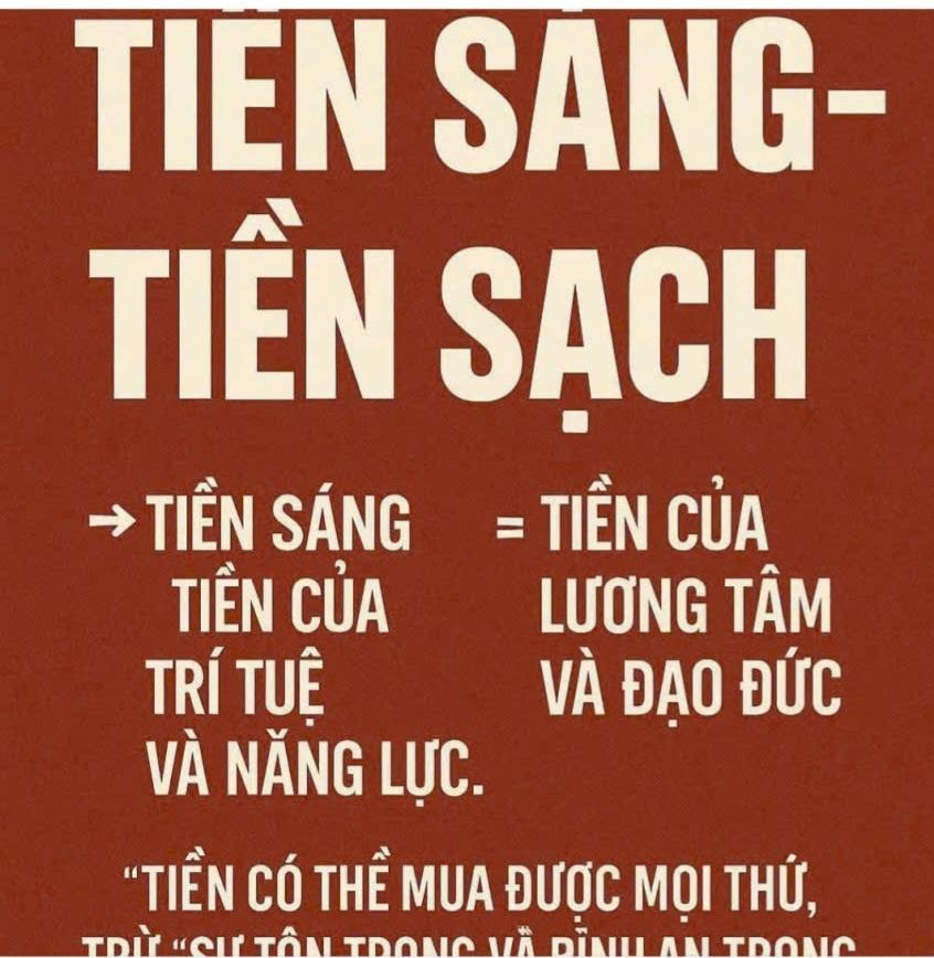 HNI 28-10: “TIỀN SÁNG – TIỀN SẠCH” Tiền không xấu. Xấu là cách người ta kiếm tiền và xài tiền. Có người bán rẻ nhân cách để mua sự giàu sang. Cũng có người dùng trí tuệ và tử tế để đổi lấy tự do.  “Tiền sáng” là tiền của trí tuệ và năng lực.  “Tiền sạch” là tiền của lương tâm và đạo đức. Tiền sáng giúp ta ngẩng cao đầu. Tiền sạch giúp ta ngủ yên giấc. Làm giàu không khó, Giữ nhân cách khi giàu mới khó. Thà chậm hơn một chút, nhưng đi bằng con đường sáng và sạch. Bởi vì — > Tiền có thể mua được mọi thứ, trừ “sự tôn trọng và bình an trong tim”. #TiềnSángTiềnSạch #TưDuyLàmGiàuĐúngNghĩa #GiàuCảTâmLẫnTầm #MarketingĐạoĐức #ChơiĐỉnhSốngĐẹp Đọc thêm