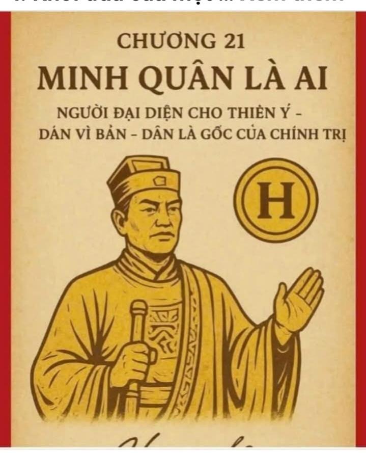 HNI 28/10: 💎PHẦN III: MINH QUÂN – MINH CHỦ – MINH TRỊ 🌺CHƯƠNG 21: MINH QUÂN LÀ AI – NGƯỜI ĐẠI DIỆN CHO THIÊN Ý I. Khởi đầu của một kỷ nguyên minh triết Từ thuở hồng hoang, con người vẫn luôn khao khát một vị lãnh đạo sáng suốt — người vừa hiểu lòng dân, vừa thuận ý Trời. Mọi triều đại huy hoàng trong lịch sử đều mở đầu bằng sự xuất hiện của một “minh quân” – người có khả năng lắng nghe không chỉ tiếng nói của nhân dân, mà còn cả tiếng vọng vô hình của Thiên mệnh. “Minh quân” không phải là kẻ ngồi trên ngai vàng, mà là người biết vì dân mà trị, lấy Đạo mà dẫn, lấy đức mà giữ thiên hạ. Bởi nếu chỉ có quyền mà không có Đạo, thì quyền ấy chỉ là bóng đèn cháy rực trong chốc lát, rồi vụt tắt trong tăm tối. Còn minh quân, chính là người soi sáng nhân tâm bằng chính ánh sáng trong tâm mình. Thế giới hôm nay – dù không còn vua chúa – vẫn cần những minh quân mới, những người biết lãnh đạo bằng trí tuệ và lòng nhân, biết đặt mình trong dòng chảy Thiên Đạo để dẫn dắt nhân loại bước vào thời đại mới – thời đại của ý Trời, lòng Dân và trí Tuệ hợp nhất. II. Thiên ý – nguồn gốc tối cao của quyền lực Muốn hiểu minh quân là ai, trước hết phải hiểu Thiên ý là gì. Từ xưa, các bậc hiền triết Đông – Tây đều nói: “Trời sinh ra người, nhưng cũng đặt trong lòng người hạt mầm của Đạo.” Thiên ý không phải là ý chí của một đấng vô hình ở xa xôi, mà là trật tự tự nhiên của vũ trụ – nơi mà công lý, đạo đức và nhân tâm hòa làm một. Trong “Đạo Đức Kinh”, Lão Tử viết: “Người thuận Đạo thì Đạo ở cùng người. Kẻ nghịch Đạo thì Đạo rời bỏ hắn.” Thiên ý chính là Đạo vận hành trong trật tự nhân sinh. Một nhà lãnh đạo muốn trở thành minh quân thì không thể dựa vào sức mạnh hay mưu kế, mà phải thấu hiểu quy luật của Trời – Đất – Người. Trời trao quyền cho ai, không phải qua nghi lễ hay ngai vàng, mà qua sự đồng thuận sâu thẳm trong lòng dân chúng. Thiên ý thể hiện qua: Dân ý: khi lòng dân hướng về một người, đó là dấu hiệu Trời đang thử trao sứ mệnh cho người ấy. Thiên thời: khi thời đại cần một hướng đi mới, Trời sẽ chọn người đủ tầm để mở lối. Đạo tâm: người được chọn phải có tâm sáng, không vì tư lợi mà hành động, luôn hướng tới lợi ích chung của muôn dân.