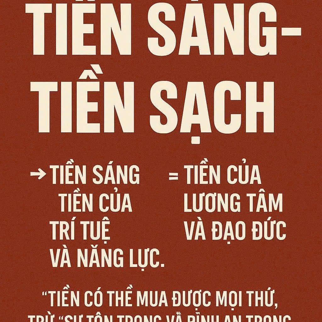 HNI 29-10: “TIỀN SÁNG – TIỀN SẠCH” Tiền không xấu. Xấu là cách người ta kiếm tiền và xài tiền. Có người bán rẻ nhân cách để mua sự giàu sang. Cũng có người dùng trí tuệ và tử tế để đổi lấy tự do. 👉 “Tiền sáng” là tiền của trí tuệ và năng lực. 👉 “Tiền sạch” là tiền của lương tâm và đạo đức. Tiền sáng giúp ta ngẩng cao đầu. Tiền sạch giúp ta ngủ yên giấc. Làm giàu không khó, Giữ nhân cách khi giàu mới khó. Thà chậm hơn một chút, nhưng đi bằng con đường sáng và sạch. Bởi vì — > Tiền có thể mua được mọi thứ, trừ “sự tôn trọng và bình an trong tim”. #TiềnSángTiềnSạch #TưDuyLàmGiàuĐúngNghĩa #GiàuCảTâmLẫnTầm #MarketingĐạoĐức #ChơiĐỉnhSốngĐẹp