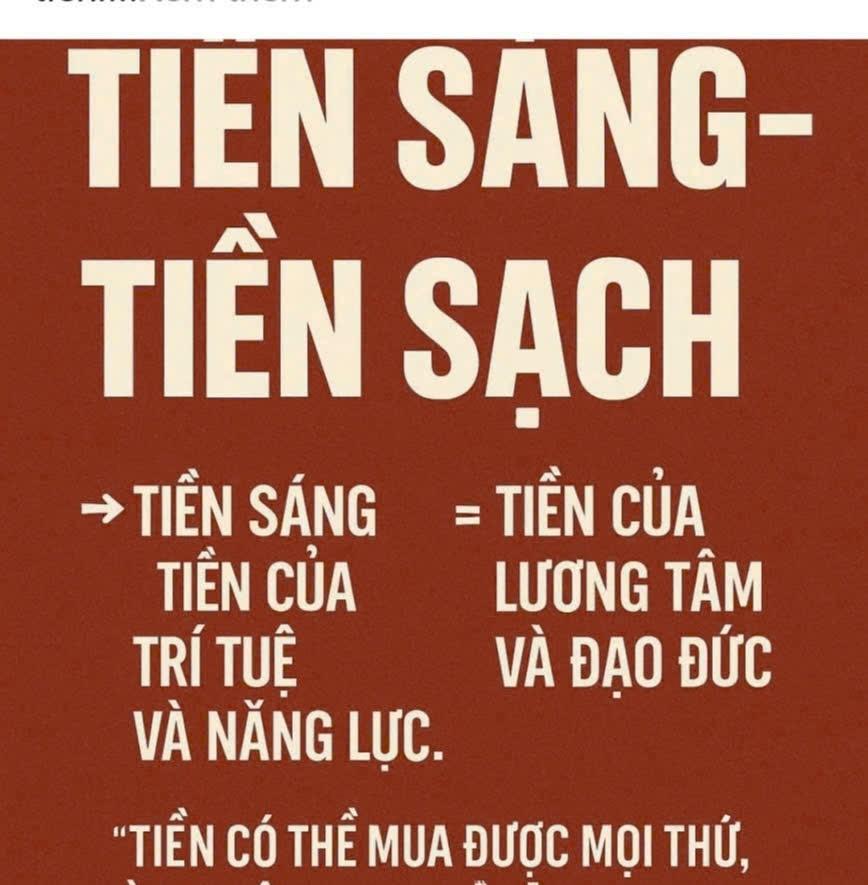 HNI 29/10: “TIỀN SÁNG – TIỀN SẠCH” Tiền không xấu. Xấu là cách người ta kiếm tiền và xài tiền. Có người bán rẻ nhân cách để mua sự giàu sang. Cũng có người dùng trí tuệ và tử tế để đổi lấy tự do. 👉 “Tiền sáng” là tiền của trí tuệ và năng lực. 👉 “Tiền sạch” là tiền của lương tâm và đạo đức. Tiền sáng giúp ta ngẩng cao đầu. Tiền sạch giúp ta ngủ yên giấc. Làm giàu không khó, Giữ nhân cách khi giàu mới khó. Thà chậm hơn một chút, nhưng đi bằng con đường sáng và sạch. Bởi vì — > Tiền có thể mua được mọi thứ, trừ “sự tôn trọng và bình an trong tim”. #TiềnSángTiềnSạch #TưDuyLàmGiàuĐúngNghĩa #GiàuCảTâmLẫnTầm #MarketingĐạoĐức #ChơiĐỉnhSốngĐẹp