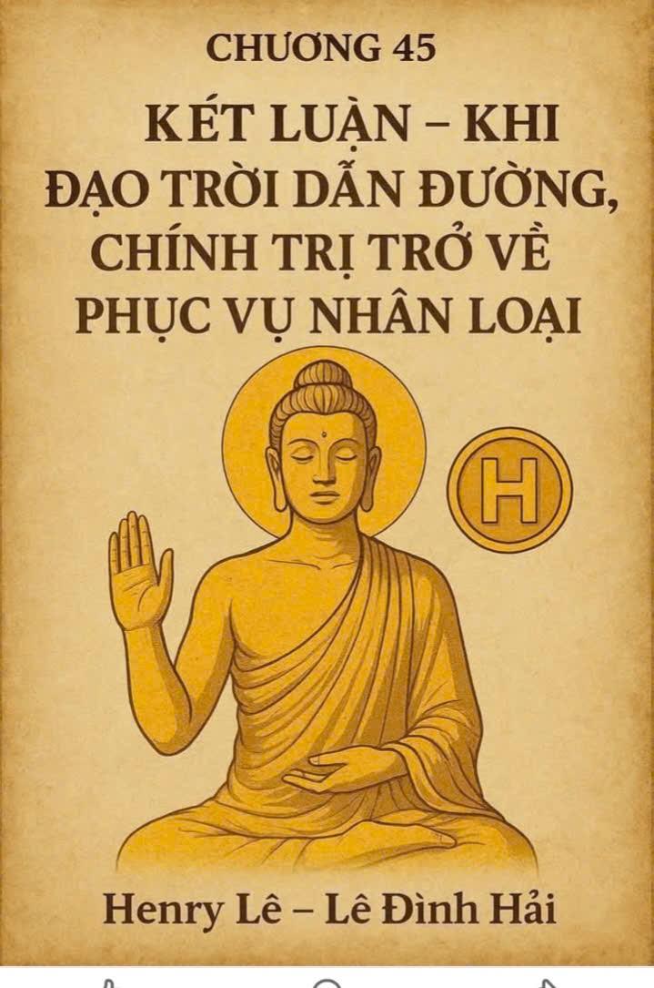 HNI 1/11Chương 45: KẾT LUẬN – KHI ĐẠO TRỜI DẪN ĐƯỜNG, CHÍNH TRỊ TRỞ VỀ PHỤC VỤ NHÂN LOẠI 1. Chính trị – con đường lạc khỏi Đạo Trời Trong hàng nghìn năm lịch sử nhân loại, chính trị được dựng nên như một cơ chế để quản trị con người, nhưng rồi nó lại dần trở thành công cụ để kiểm soát con người. Khi quyền lực bị tách khỏi tình thương, khi những người cầm quyền quên mất rằng họ chỉ là người phục vụ cộng đồng, thì chính trị biến dạng, trở thành trò chơi của quyền lực, của lợi ích và của sợ hãi. Từ triều đại này sang triều đại khác, từ chủ nghĩa này đến học thuyết khác, nhân loại vẫn loay hoay trong câu hỏi: “Làm thế nào để người trị vì không phản bội dân? Làm thế nào để quyền lực không tha hóa linh hồn?” Câu trả lời thật ra luôn nằm đó – trong Đạo Trời, trong nguyên lý bất biến của vũ trụ rằng: mọi quyền lực chỉ có giá trị khi được vận hành trong Tình Thương và Trí Tuệ. Chính trị khi mất Đạo, chẳng khác gì con thuyền không la bàn, cứ trôi theo dòng tham vọng. Và khi cả một dân tộc cùng đánh mất Đạo, xã hội ấy sẽ trôi vào thời kỳ đen tối – nơi con người sợ hãi lẫn nhau, nơi kẻ mạnh tự xưng là “thượng đế”, còn kẻ yếu quên rằng mình vốn dĩ mang trong tim ánh sáng của Trời. 2. Khi Đạo trở lại – chính trị trở về phục vụ Kỷ nguyên mới đang mở ra – thời đại của chính trị tâm linh, nơi mỗi quyết định quốc gia không còn dựa vào mệnh lệnh hành chính hay toan tính quyền lợi, mà dựa trên tần số Đạo Tâm. Đạo ở đây không phải là tôn giáo, càng không phải giáo điều. Đạo là nguyên lý vận hành của Trời, là trật tự tự nhiên mà mọi sinh thể đều đang tuân theo. Khi con người nhận ra mình chỉ là một tế bào trong cơ thể vũ trụ, họ sẽ không còn tìm cách thống trị, mà sẽ phục vụ cho sự hài hòa chung của toàn thể. Chính trị khi đặt Đạo làm trung tâm sẽ không còn phân chia thành “phe cánh”, “đảng phái”, “bên thắng – bên thua”. Nó trở thành một dòng chảy hợp nhất, nơi người lãnh đạo là người có năng lực cảm nhận dòng năng lượng chung của dân, của đất, của trời, và điều tiết nó bằng lòng yêu thương vô ngã. Đó là chính trị của sự thức tỉnh, nơi luật pháp không cần dùng bạo lực để cưỡng chế, bởi chính người dân đã tự giác tuân theo Luật của Đạo – tức là Luật của Tự nhiên, Luật của Công bằng và Nhân nghĩa.
