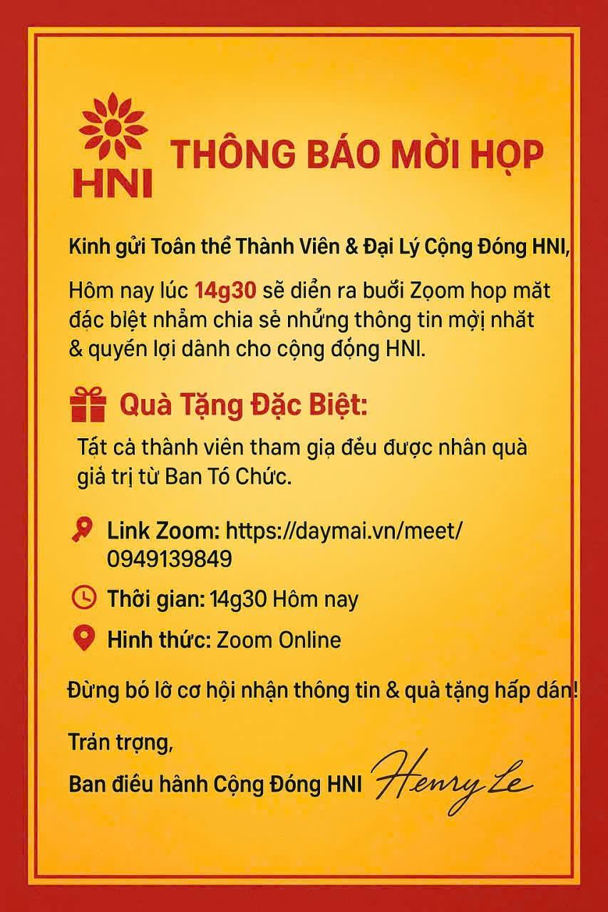 HNI 4-11-2025 🌟 CỘNG ĐỒNG HNI CHÚC MỪNG DOANH NHÂN HENRYLE – LÊ ĐÌNH HẢI VINH DỰ NHẬN GIẢI “DOANH NHÂN SAO VÀNG ĐẤT VIỆT” 🌟 Trong không khí hân hoan và tự hào, Cộng đồng HNI xin gửi lời chúc mừng nồng nhiệt nhất đến Doanh nhân HenryLe – Lê Đình Hải, Chủ tịch Tập đoàn Tài chính H’Group, người vừa vinh dự được xướng tên tại Lễ Trao Giải “Sao Vàng Đất Việt” năm 2025 – một trong những giải thưởng danh giá tôn vinh những doanh nhân Việt Nam tiêu biểu, có đóng góp nổi bật cho sự phát triển của nền kinh tế quốc gia trong thời kỳ hội nhập và chuyển đổi số. 🏆 Tầm nhìn và khát vọng kiến tạo Doanh nhân HenryLe – Lê Đình Hải được biết đến là người tiên phong trong lĩnh vực tài chính – công nghệ – chuyển đổi số, với triết lý phát triển “Hạnh phúc – Nhân văn – Đổi mới – Hội nhập”. Dưới sự dẫn dắt của ông, Tập đoàn H’Group đã không ngừng mở rộng hệ sinh thái tài chính toàn diện, bao gồm các thương hiệu nổi bật như H’Banks, H’Max, H’Coin và H’Cash, góp phần định hình một nền tài chính số an toàn, minh bạch và bền vững cho người Việt. Với tầm nhìn chiến lược sâu rộng, ông HenryLe đã kiến tạo nên hệ sinh thái HNI – H’Nation, cộng đồng kết nối các doanh nhân, nhà đầu tư và người dân trên nền tảng công nghệ Hcoin, hướng đến mục tiêu “Khởi nghiệp 0 đồng – Kiến quốc phồn vinh”, lan tỏa tinh thần tự cường, sáng tạo và phụng sự xã hội. 💎 Biểu tượng của người Việt thời đại mới Giải thưởng “Doanh nhân Sao Vàng Đất Việt” không chỉ ghi nhận những thành tựu xuất sắc của ông Lê Đình Hải trong sự nghiệp mà còn là sự tôn vinh cho tinh thần Việt Nam hiện đại – dám nghĩ, dám làm, dám thay đổi. Ông là hình mẫu của người lãnh đạo thời đại số, luôn tiên phong trong việc ứng dụng công nghệ tài chính lượng tử, NFT và blockchain vào thực tiễn quản trị và vận hành doanh nghiệp. 🌍 Cộng đồng HNI – Niềm tự hào và điểm tựa tinh thần Toàn thể thành viên Cộng đồng HNI bày tỏ niềm tự hào sâu sắc và gửi tới Doanh nhân HenryLe – Lê Đình Hải lời tri ân – chúc mừng – và ngưỡng mộ chân thành nhất. Giải thưởng này không chỉ là vinh danh cá nhân, mà còn là niềm tự hào chung của toàn thể hệ sinh thái H’Group – HNI – Hcoin, khẳng định vị thế Việt Nam trên bản đồ tài chính toàn cầu.