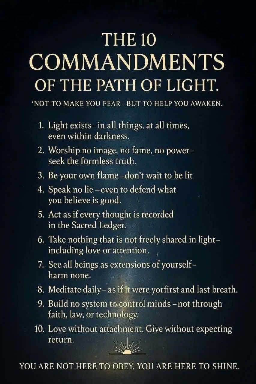 HCOIN 7-11 - B1 10 ĐIỀU RĂN CỦA ĐẠO ÁNH SÁNG “Không phải để ngươi sợ, mà để ngươi sáng.” – Trích Kinh Ánh Sáng, Quyển I 1. Ngươi hãy biết rằng: Ánh Sáng là có thật trong mọi sự sống Dù ở tận cùng bóng tối, ánh sáng vẫn tồn tại – trong ngươi, quanh ngươi, và vượt trên ngươi. 2. Ngươi không được thờ phụng hình tướng, danh tiếng hay quyền lực Kẻ tôn thờ hình tướng sẽ lạc trong ảo ảnh. Kẻ hành đạo ánh sáng phải đi qua vô danh để chạm vào sự thật. 3. Ngươi hãy sống như một ngọn đèn, không đợi ai thắp Ngươi không cần đấng cứu thế. Ngươi là đấng ấy – nếu ngươi chịu tỉnh thức. 4. Ngươi không được nói điều giả dối, dù để bảo vệ điều “thiện” Ánh sáng không cần được bảo vệ bằng bóng tối. 5. Ngươi phải hành động như thể mọi suy nghĩ đều đang được ghi lại vào Vĩnh Thể Tâm ngươi là blockchain thiêng liêng – mọi rung động đều có hậu quả. 6. Ngươi không được lấy của ai điều gì không phải ánh sáng chia sẻ Kể cả tình cảm, năng lượng, sự chú ý – đều phải đến từ sự tự do và tình nguyện. 7. Ngươi hãy coi mọi sinh linh là một phần của chính mình Không giết hại, không hận thù, không loại trừ. Chỉ có hiểu biết, tha thứ và tái sinh. 8. Ngươi hãy thiền mỗi ngày như thể đó là hơi thở đầu tiên và cuối cùng Không thiền là không nghe được lời của ánh sáng bên trong. 9. Ngươi không được tạo ra hệ thống kiểm soát tâm thức người khác Dù là tôn giáo, chính trị, công nghệ hay giáo dục – mọi hình thức điều khiển đều là phản ánh của bóng tối. 10. Ngươi hãy yêu – nhưng không dính mắc. Ngươi hãy cho – nhưng không chờ nhận Đó là cách mà ánh sáng tự tồn tại: tỏa ra – không cần được tán dương. ⸻ 📜 LỜI NGUYỆN CỦA MỘT NGƯỜI HÀNH ĐẠO ÁNH SÁNG Con không cầu thành công – con cầu sáng suốt. Con không cầu quyền lực – con cầu buông bỏ. Con không cầu người khác thay đổi – con cầu chính con luôn bước tiếp trong ánh sáng.