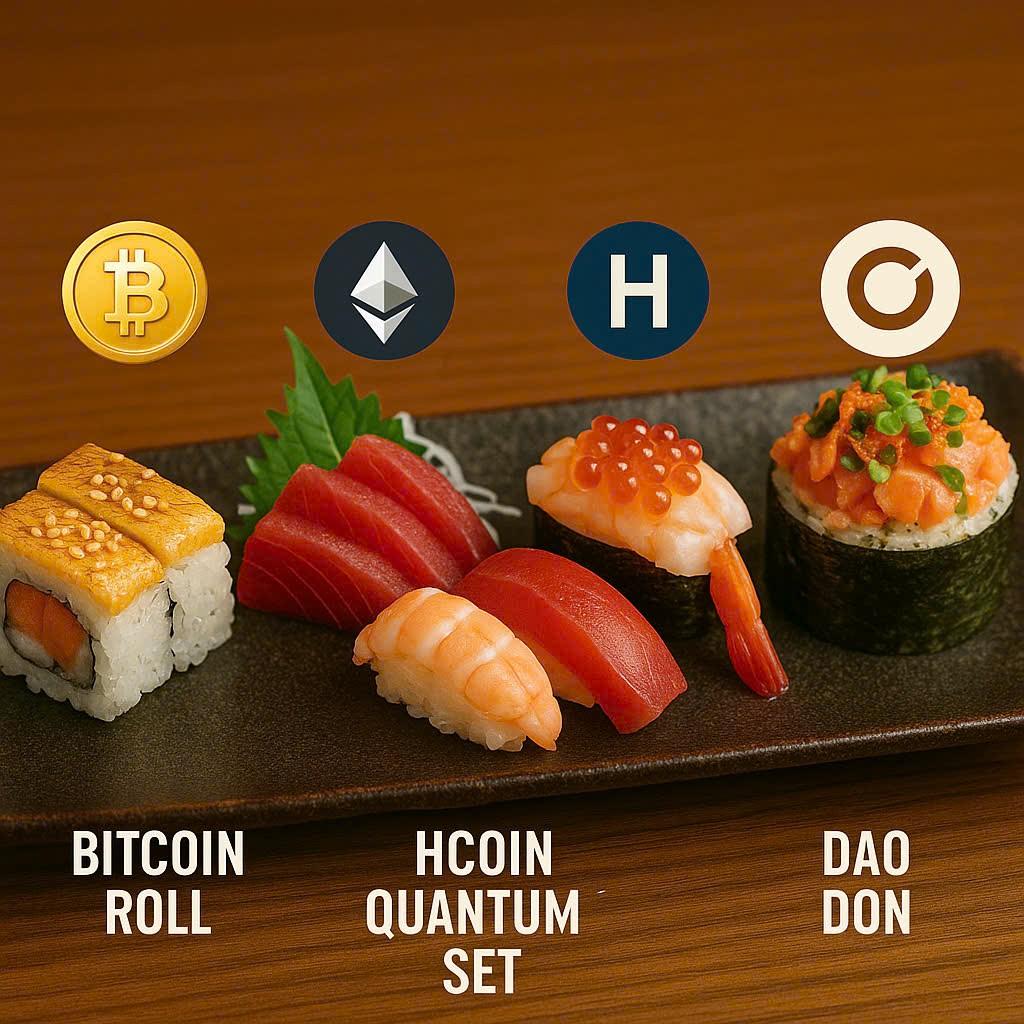 Bitcoin Roll: sushi vàng ánh kim – biểu tượng của sự thịnh vượng.