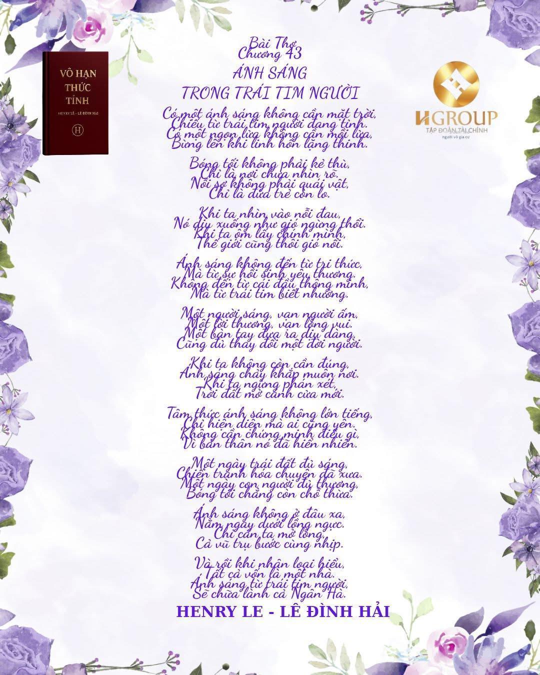 HNI 9-11 - BÀI THƠ CHƯƠNG 43 : ÁNH SÁNG TRONG TRÁI TIM NGƯỜI Có một ánh sáng không cần mặt trời, Chiếu từ trái tim người đang tỉnh. Có một ngọn lửa không cần mồi lửa, Bừng lên khi linh hồn lặng thinh. Bóng tối không phải kẻ thù, Chỉ là nơi chưa nhìn rõ. Nỗi sợ không phải quái vật, Chỉ là đứa trẻ còn lo. Khi ta nhìn vào nỗi đau, Nó dịu xuống như gió ngừng thổi. Khi ta ôm lấy chính mình, Thế giới cũng thôi gió nổi. Ánh sáng không đến từ tri thức, Mà từ sự hồi sinh yêu thương. Không đến từ cái đầu thông minh, Mà từ trái tim biết nhường. Một người sáng, vạn người ấm, Một lời thương, vạn lòng vui. Một bàn tay đưa ra dịu dàng, Cũng đủ thay đổi một đời người. Khi ta không còn cần đúng, Ánh sáng chảy khắp muôn nơi. Khi ta ngừng phán xét, Trời đất mở cánh cửa mới. Tâm thức ánh sáng không lớn tiếng, Chỉ hiện diện mà ai cũng yên. Không cần chứng minh điều gì, Vì bản thân nó đã hiển nhiên. Một ngày trái đất đủ sáng, Chiến tranh hóa chuyện đã xưa. Một ngày con người đủ thương, Bóng tối chẳng còn chỗ thừa. Ánh sáng không ở đâu xa, Nằm ngay dưới lồng ngực. Chỉ cần ta mở lòng, Cả vũ trụ bước cùng nhịp. Và rồi khi nhân loại hiểu, Tất cả vốn là một nhà. Ánh sáng từ trái tim người, Sẽ chữa lành cả Ngân Hà. Đọc thêm Đọc thêm