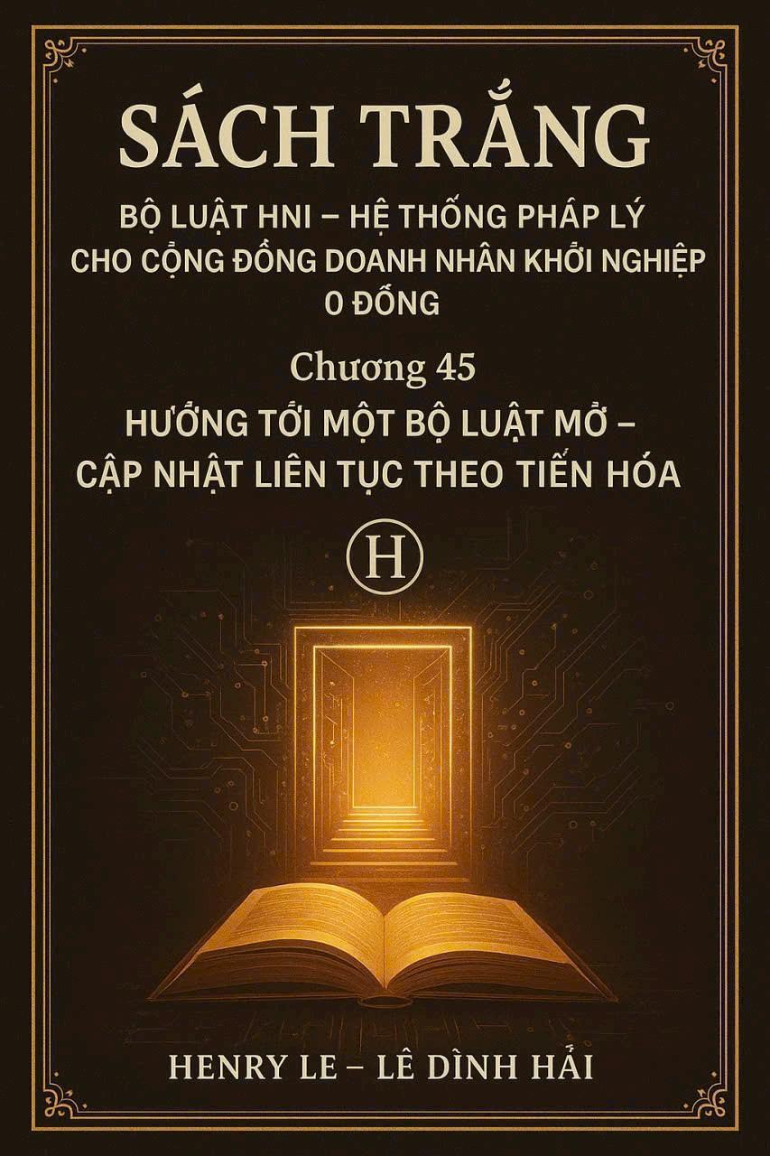 HNI 14-12 **CHƯƠNG 45: HƯỚNG TỚI MỘT BỘ LUẬT MỞ – CẬP NHẬT LIÊN TỤC THEO TIẾN HÓA** 1. Vì sao Bộ Luật HNI không thể là một bộ luật đóng Thế giới không đứng yên. Công nghệ thay đổi. Mô hình kinh tế biến chuyển. Con người trưởng thành qua từng chu kỳ khủng hoảng và phục hồi. Trong bối cảnh đó, một bộ luật nếu được viết ra để “đóng khung mãi mãi” sẽ sớm trở nên lạc hậu. HNI không chọn con đường này. Ngay từ khi hình thành, Bộ Luật HNI được xác định là một hệ thống sống, có khả năng học hỏi, điều chỉnh và tiến hóa cùng cộng đồng. > Luật HNI không phải để giữ quá khứ, mà để dẫn dắt tương lai. 2. Khái niệm “Bộ luật mở” trong HNI Bộ luật mở trong HNI là bộ luật: Không bất biến Không thần thánh hóa câu chữ Không phục vụ lợi ích nhóm cố định Không đứng ngoài thực tiễn Luật mở cho phép: Cập nhật theo bối cảnh mới Điều chỉnh khi phát sinh bất cập Bổ sung khi cộng đồng trưởng thành Loại bỏ quy định không còn phù hợp Mở không có nghĩa là lỏng lẻo, mà là linh hoạt trong khuôn khổ giá trị cốt lõi. 3. Nguyên tắc bất biến trong một bộ luật mở Dù có thể cập nhật, Bộ Luật HNI vẫn giữ các nguyên tắc không thay đổi: Bảo vệ con người trước lợi ích Bảo vệ cộng đồng trước cá nhân Minh bạch – công bằng – trách nhiệm Khởi nghiệp 0 đồng nhưng không vô trách nhiệm Tự do sáng tạo gắn liền kỷ cương Những nguyên tắc này là xương sống, không được sửa đổi bằng biểu quyết nhất thời. 4. Cơ chế cập nhật và tiến hóa luật Việc cập nhật Bộ Luật HNI được thực hiện thông qua: Đề xuất từ cộng đồng Kiến nghị từ Chapter Phân tích thực tiễn vận hành Đánh giá của Hội đồng Sáng lập Biểu quyết DAO theo quy trình minh bạch Mọi thay đổi phải: Có lý do rõ ràng Có đánh giá tác động Có thời gian thử nghiệm Có cơ chế quay lại nếu không phù hợp 5. Vai trò của cộng đồng trong tiến hóa luật Cộng đồng không chỉ là đối tượng tuân thủ luật, mà là chủ thể đồng kiến tạo luật. Mỗi thành viên có trách nhiệm: Góp ý xây dựng Phản biện trên tinh thần tôn trọng Báo cáo bất cập trong vận hàn