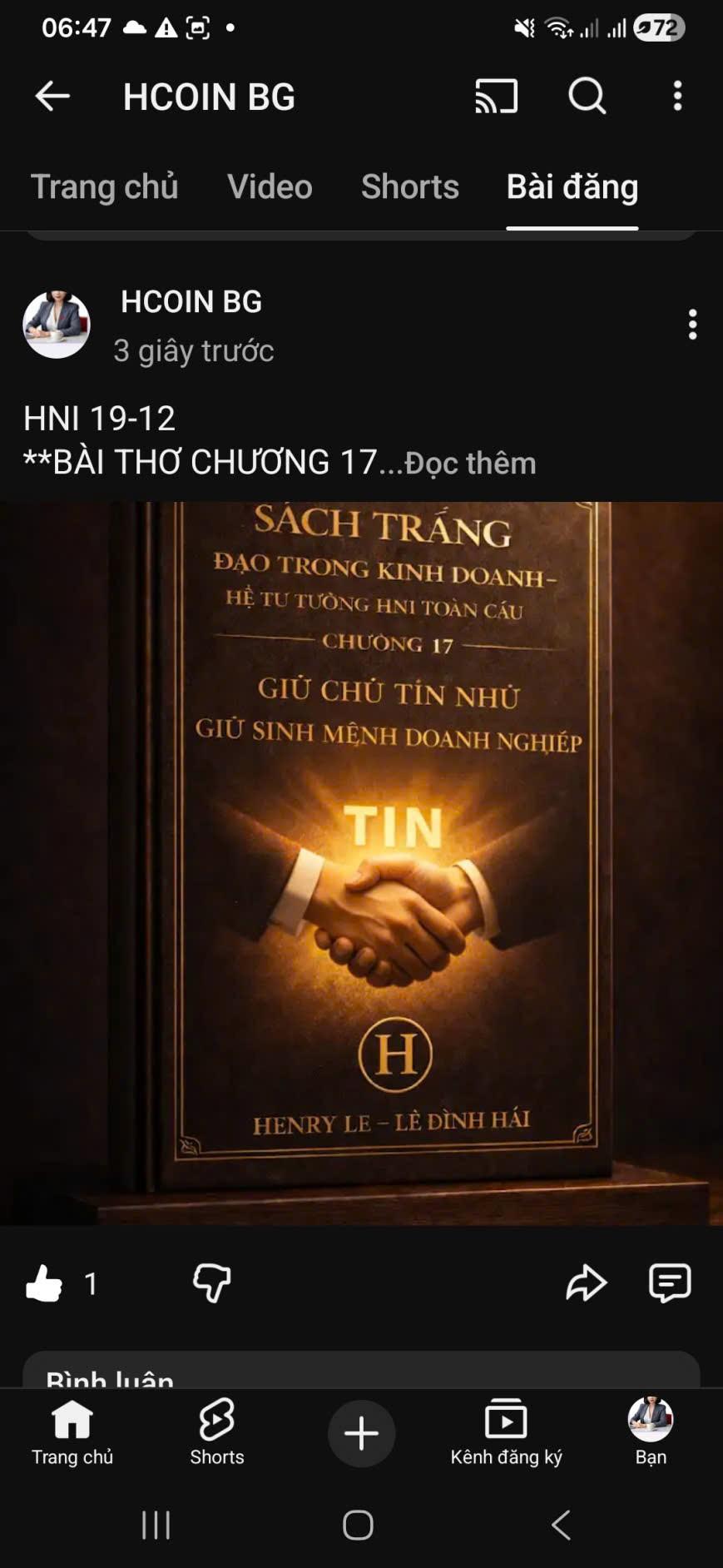HNI 19-12 **BÀI THƠ CHƯƠNG 17 Chữ Tín đâu phải lời hoa Mà là sinh mệnh đi qua tháng ngày Một lần thất hứa hôm nay Ngàn lần trả giá mai này còn đau Tiền rơi có thể nhặt mau Niềm tin vỡ nát biết đâu mà tìm Doanh nhân giữ vẹn chữ tâm Lấy Tín làm gốc dựng nghìn cơ đồ Thị trường chẳng dễ ngu ngơ Hứa sao, làm vậy, đợi chờ mà xem Một khi dối trá quen thềm Chính ta đào hố chôn tên chính mình HNI dạy chữ Tín sinh Trước khi học cách phất lên giàu sang Sai thì nhận, sửa đàng hoàng Minh bạch còn quý hơn vàng nhất thời Lời hứa nhẹ tựa làn hơi Nhưng khi đã nói – một đời khắc ghi Danh doanh nghiệp, phận người đi Buộc trong hai chữ Tín – Nghìa song song Giữ Tín chẳng sợ bão giông Mất Tín, nắng cũng hóa đông lạnh lùng Mai sau con cháu ngẩng đầu Nhờ ta giữ trọn ban đầu chữ Tin.