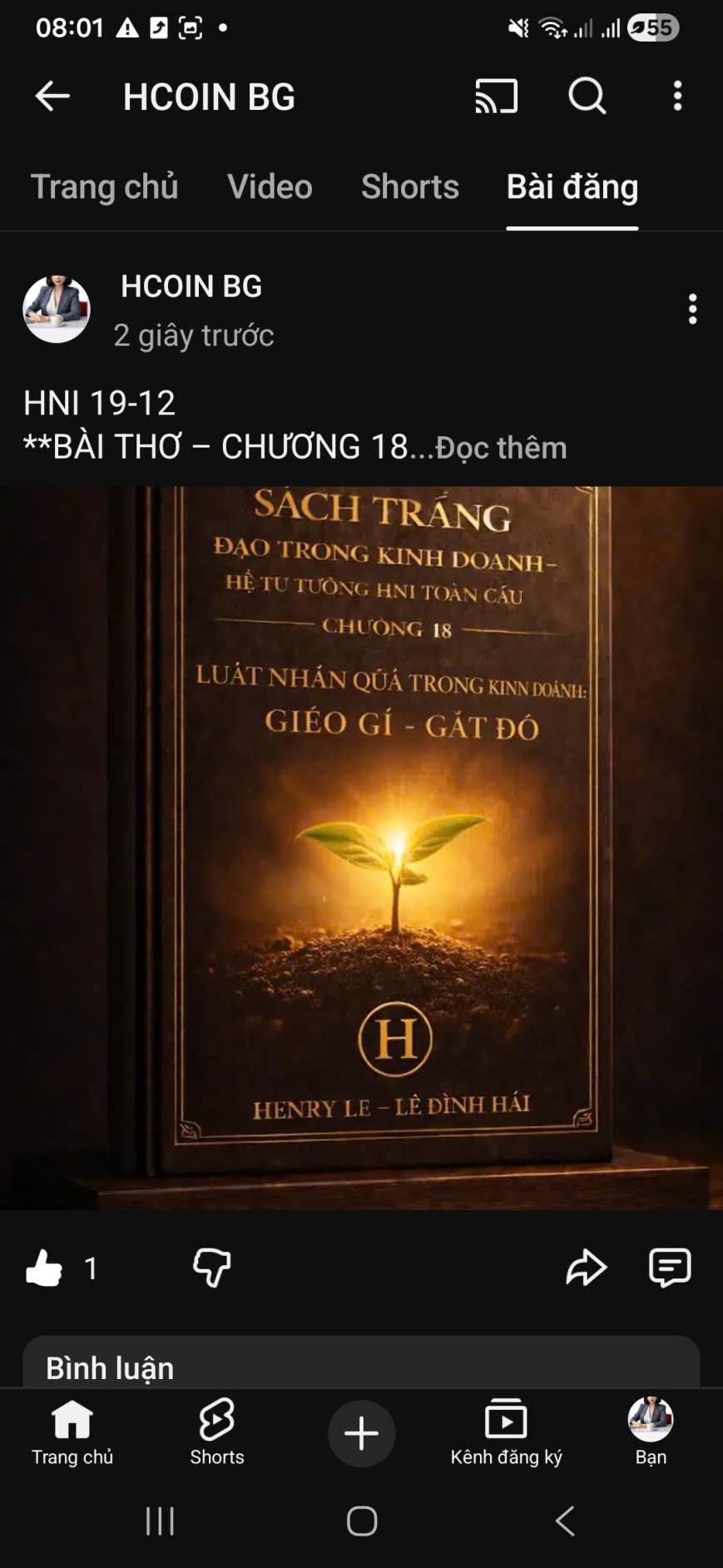 HNI 19-12 **BÀI THƠ – CHƯƠNG 18 Gieo một hạt giống hôm nay Mai sau trổ quả đắng cay hay lành Đường kinh doanh vốn mong manh Một niệm sai lệch, trăm vành khổ đau Có người gieo gió sang giàu Bán đi lương tri đổi màu lợi danh Ngày vui chưa kịp gọi thành Đêm dài đã thấy mong manh phận mình Có người chậm bước lặng thinh Gieo tâm tử tế, giữ mình thẳng ngay Tháng năm chẳng vội phô bày Nhưng gốc rễ đã bén dày niềm tin Nhân quả chẳng hẹn chẳng xin Không cần phán xét, không in sắc màu Gieo gì từ thuở ban đầu Thời gian sẽ trả rất sâu, rất đều Tiền kia nếu đẫm mưu kế Sẽ mang bóng tối quay về phía sau Lợi danh không đỡ được nhau Khi lòng xã hội úp nhào niềm tin Gieo điều chân thật, lặng nhìn Uy tín lớn dần qua nghìn thử thách Một ngày giông bão quật mạnh Niềm tin đứng vững như thành đá sâu Doanh nhân không chỉ làm giàu Mà gieo phúc đức cho nhau lâu bền Hiểu rằng mỗi bước đi lên Là đang viết tiếp vận mệnh đời mình Gieo tâm sáng – gặt bình minh Gieo tham tối – gặt chính mình héo hon