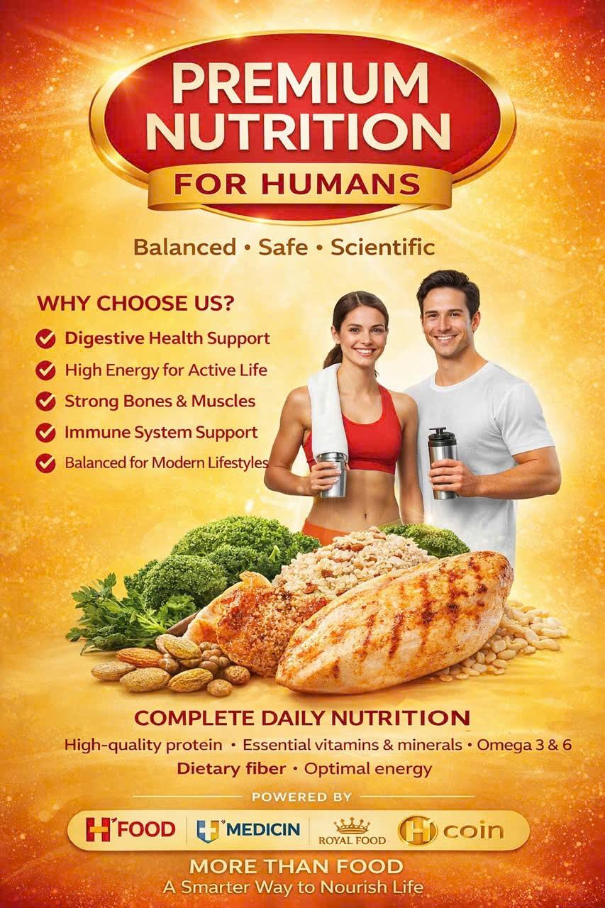 HNI 20/12 RA MẮT DÒNG THỰC PHẨM DINH DƯỠNG CAO CẤP H’Food – H’Medicin – Royal Food – Hcoin Giải pháp bữa ăn khoa học cho con người hiện đại Trong bối cảnh nhịp sống ngày càng nhanh, con người không chỉ cần “ăn no” mà còn cần ăn đúng – ăn đủ – ăn thông minh. Nắm bắt xu hướng đó, liên minh thương hiệu H’Food – H’Medicin – Royal Food – Hcoin chính thức ra mắt dòng thực phẩm dinh dưỡng cao cấp dành cho con người, được nghiên cứu dựa trên nền tảng khoa học dinh dưỡng hiện đại và tiêu chuẩn an toàn nghiêm ngặt. ⸻ DINH DƯỠNG TOÀN DIỆN – NỀN TẢNG CHO SỨC KHỎE BỀN VỮNG Sản phẩm được thiết kế như một bữa ăn cân bằng, cung cấp đầy đủ: • Protein chất lượng cao hỗ trợ cơ bắp và thể lực • Năng lượng tối ưu cho lao động trí óc và thể chất • Vitamin & khoáng chất thiết yếu giúp cơ thể vận hành hiệu quả • Chất xơ và dưỡng chất hỗ trợ tiêu hóa – miễn dịch Mỗi khẩu phần được tính toán để phù hợp với lối sống hiện đại: ít thời gian – hiệu quả cao – dễ sử dụng. ⸻ SỰ KẾT HỢP CỦA 4 GIÁ TRỊ CỐT LÕI 🔹 H’Food – Chuẩn mực thực phẩm dinh dưỡng 🔹 H’Medicin – Tư duy khoa học, hướng đến sức khỏe lâu dài 🔹 Royal Food – Định vị cao cấp, tiêu chuẩn chọn lọc 🔹 Hcoin – Hệ sinh thái công nghệ & giá trị cộng đồng Sự kết hợp này không chỉ tạo ra một sản phẩm, mà là một giải pháp dinh dưỡng mang tính hệ sinh thái, hướng tới con người khỏe mạnh cả thể chất lẫn tinh thần. ⸻ THIẾT KẾ BAO BÌ – THÔNG ĐIỆP RÕ RÀNG Bao bì tông vàng – đỏ nổi bật, biểu trưng cho: • Năng lượng • Sự thịnh vượng • Chất lượng cao cấp Các thông điệp chính được thể hiện ngắn gọn, minh bạch: ✔ Hỗ trợ tiêu hóa ✔ Tăng cường năng lượng ✔ Phát triển xương & cơ ✔ Hỗ trợ miễn dịch ✔ Cân bằng cho mọi lối sống ⸻ PHÙ HỢP CHO AI? Sản phẩm hướng tới: • Người lao động trí óc & thể chất cường độ cao • Người trẻ trong giai đoạn phát triển • Người theo đuổi lối sống lành mạnh • Gia đình hiện đại cần giải pháp dinh dưỡng tiện lợi ⸻ TẦM NHÌN DÀI HẠN Đại diện liên minh thương hiệu cho biết: “Chúng tôi không tạo ra một món ăn đơn thuần, mà xây dựng chuẩn mực mới cho thực phẩm dinh dưỡng dành cho con người trong kỷ nguyên hiện đại – khoa học, an toàn và bền vững.” ⸻ H’Food – H’Medicin – Royal Food – Hcoin