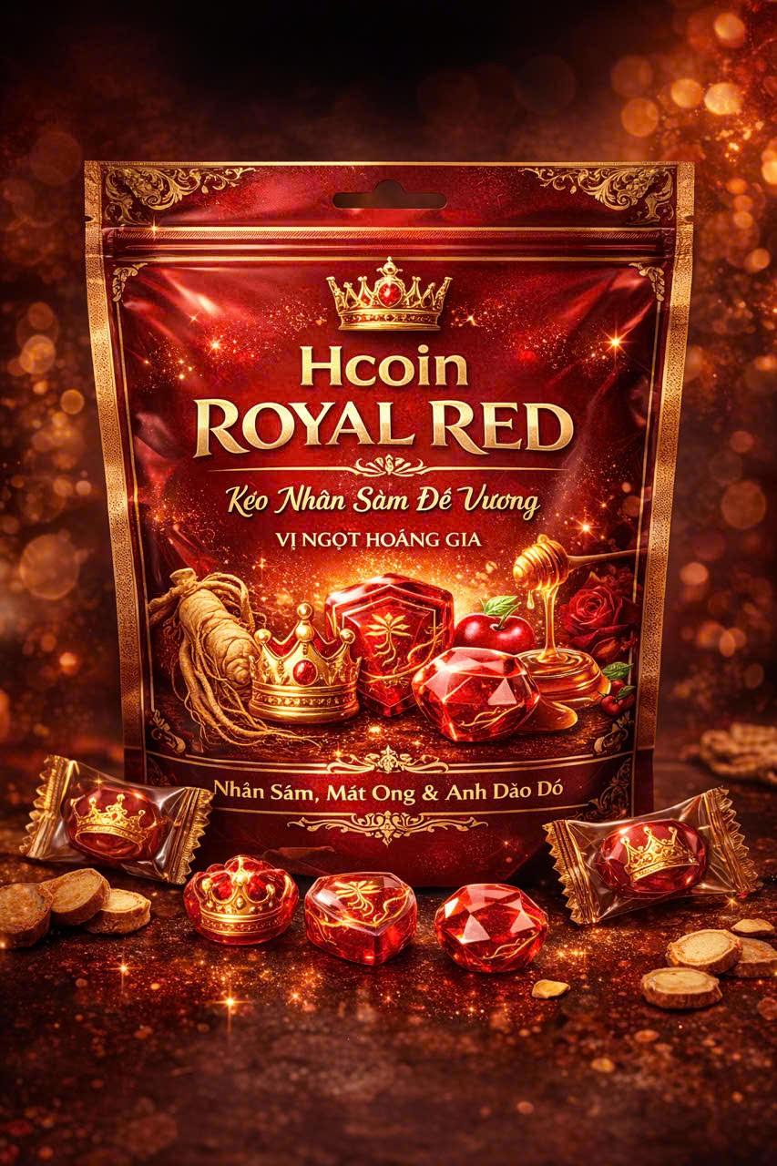 👑 HCOIN ROYAL RED Kẹo Nhân Sâm Đế Vương – Vị Ngọt Hoàng Gia 🌟 Tinh thần sản phẩm Royal Red lấy cảm hứng từ hình ảnh đế vương phương Đông: uy nghi, tinh tế, chuẩn mực. Không phải kẹo đại trà – mà là kẹo thưởng thức chậm, dành cho người trưởng thành. ⸻ 💎 HÌNH DÁNG & CẢM GIÁC • Kẹo tạo hình: • 👑 Vương miện / 🛡 ấn ngọc / 💎 kim cương đỏ • Màu sắc: đỏ ruby sẫm – ánh hổ phách • Kết cấu: cứng ngoài – tan chậm – mịn trong • Không dính răng, không gắt cổ ⸻ 🌿 HƯƠNG VỊ “ROYAL GINSENG SIGNATURE” Cân bằng để dễ ăn – không đắng gắt: • 🌱 Nhân sâm nhẹ (hậu vị ấm, thanh) • 🍯 Mật ong rừng dịu • 🍒 Anh đào đỏ • 🌹 Hoa hồng thoảng rất nhẹ 👉 Ngọt đầu – ấm giữa – thanh hậu ⸻ 🧾 THÀNH PHẦN ĐỊNH HƯỚNG (AN TOÀN) • Đường mía tinh luyện cao cấp • Chiết xuất nhân sâm ở mức thực phẩm • Trái cây tự nhiên • Không dùng màu gắt • Không quảng cáo tác dụng y học (Định vị là kẹo cao cấp, không phải thuốc) ⸻ 🎁 BAO BÌ • Tông màu: Đỏ hoàng gia – viền vàng • Logo: Hcoin Royal Red dập nổi • Chất liệu: • Túi zipper cao cấp • Hộp quà Đế Vương (phiên bản đặc biệt) ⸻ ✨ THÔNG ĐIỆP “Một viên – Một khoảnh khắc đế vương.” “Royal Red – Vị ngọt của quyền uy.” ⸻ 🎯 ĐỊNH VỊ SỬ DỤNG • Quà tặng cao cấp • Thưởng thức khi làm việc, tiếp khách • Không dành cho trẻ nhỏ