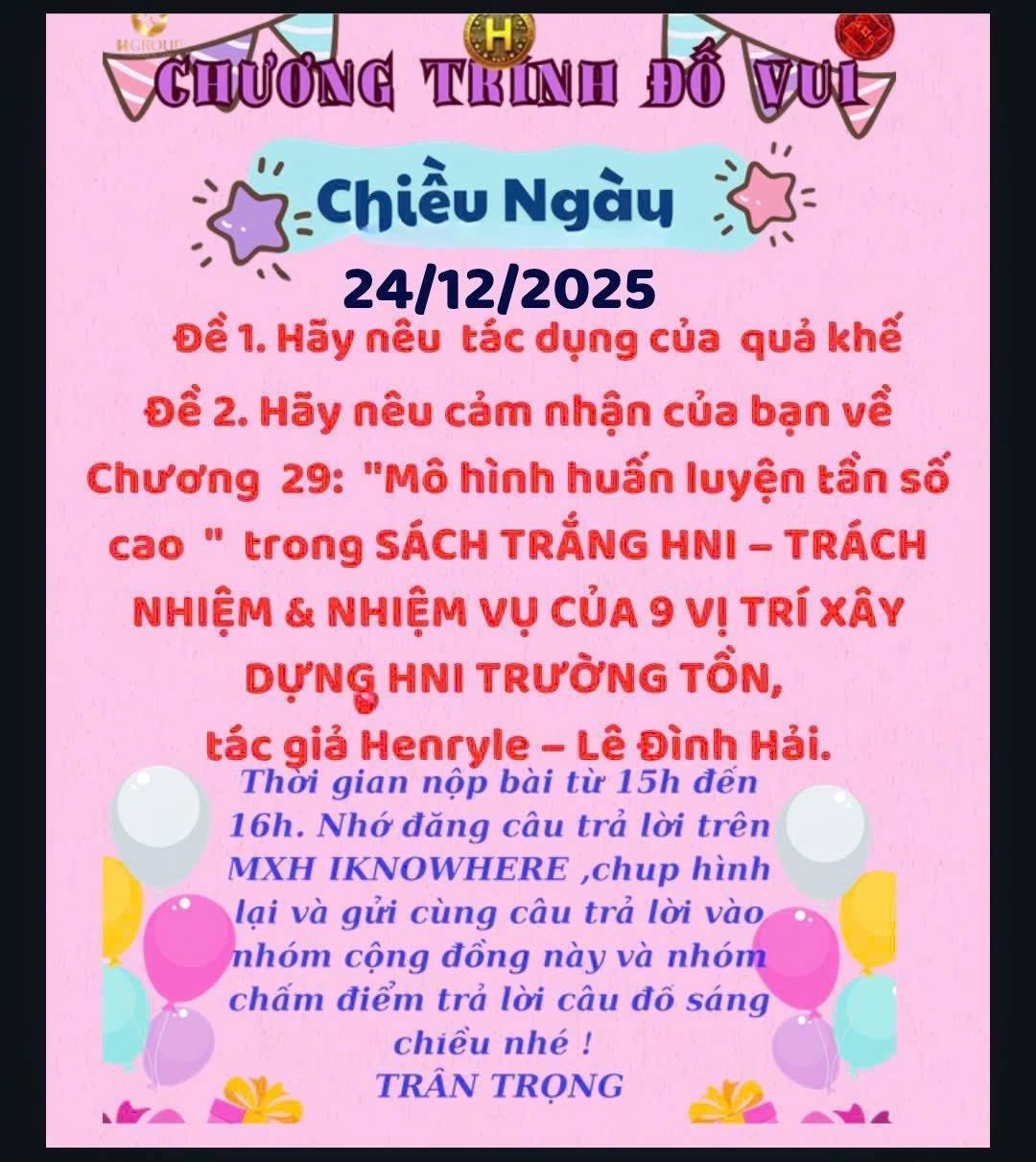 Chương 29 mang đến góc nhìn mới mẻ về huấn luyện con người và tổ chức thông qua mô hình “tần số cao”. Tác giả nhấn mạnh việc rèn luyện liên tục, đồng bộ giữa tư duy, năng lượng và hành động để tạo ra sự chuyển hóa bền vững. Tôi cảm nhận được tinh thần kỷ luật, nhất quán và sự chủ động học tập không ngừng trong mô hình này. Huấn luyện tần số cao không chỉ nâng cao năng lực cá nhân mà còn giúp tổ chức vận hành hiệu quả, gắn kết và thích nghi nhanh trước biến động, góp phần xây dựng HNI phát triển trường tồn.