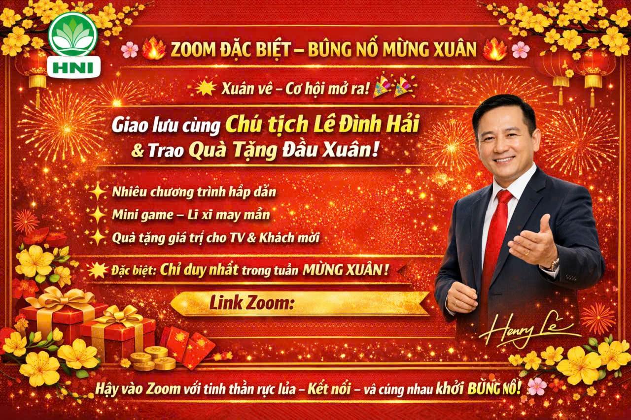 💥💥TIN HÓT NHẤT NĂM 🔥🔥 🌸🔥 ZOOM ĐẶC BIỆT – BÙNG NỔ MỪNG XUÂN 🔥🌸 💥Xuân về – Cơ hội mở ra! 🎉🎉 Cộng đồng HNI tổ chức buổi Zoom đặc biệt giao lưu trực tiếp cùng Chủ tịch Lê Đình Hải, chia sẻ tầm nhìn năm mới và trao những phần quà ý nghĩa đầu xuân. ✨ Nhiều chương trình hấp dẫn ✨ Mini game – lì xì may mắn ✨ Quà tặng giá trị dành cho tất cả TV & khách mời 💥 Đặc biệt: Chỉ duy nhất trong tuần MỪNG XUÂN này! Link zoom: https://daymai.vn/meet/0949139849 🌼Hãy vào Zoom với tinh thần rực lửa – kết nối – và cùng nhau khởi đầu năm mới thật BÙNG NỔ