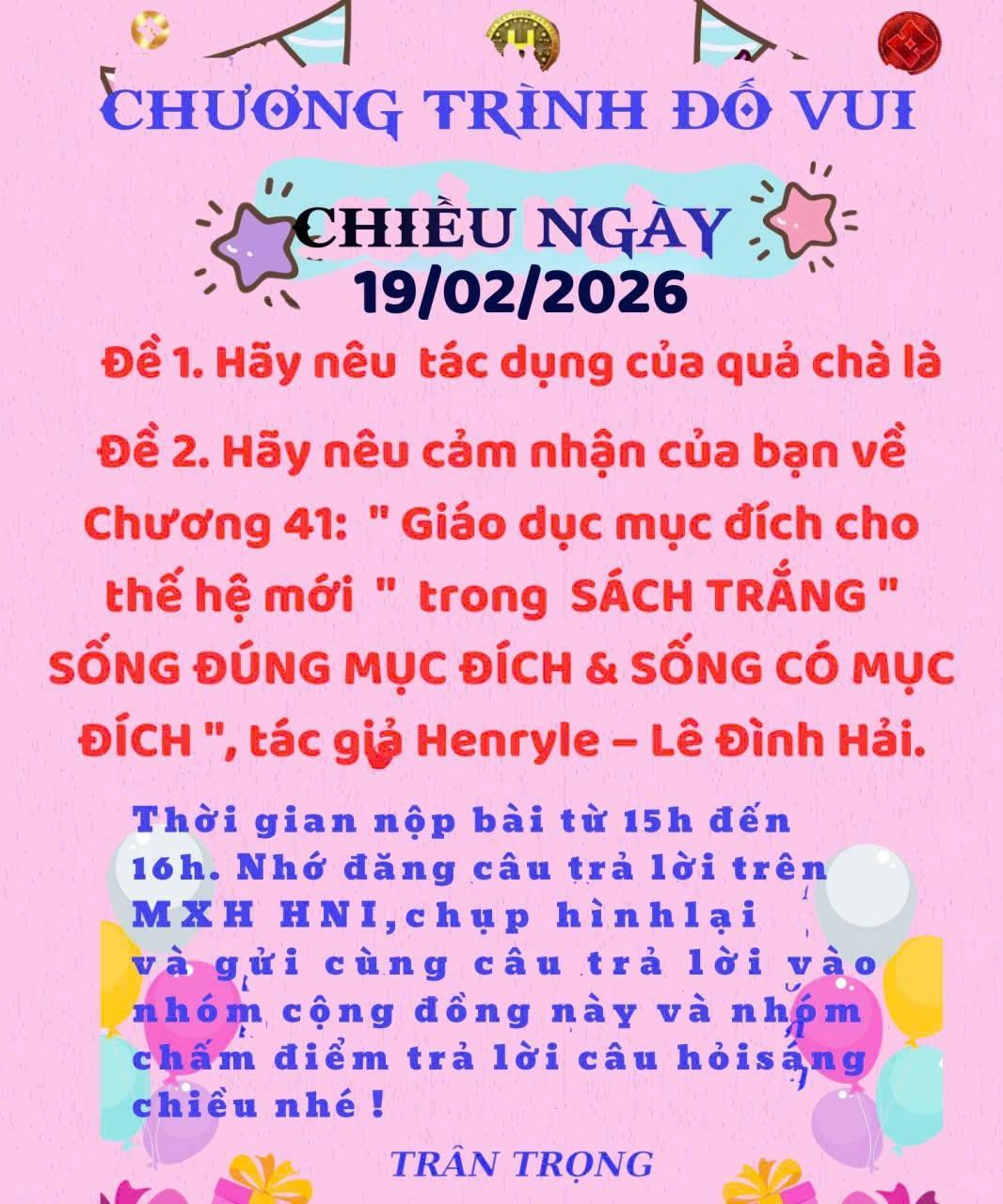 CÂU ĐỐ BUỔI CHIỀU NGÀY 19-2