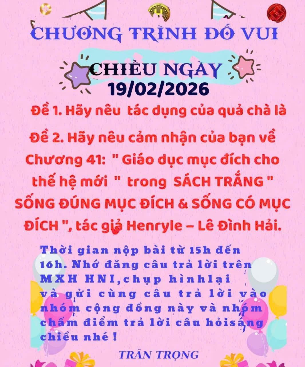 TRẢ LỜI CÂU ĐỐ CHIỀU