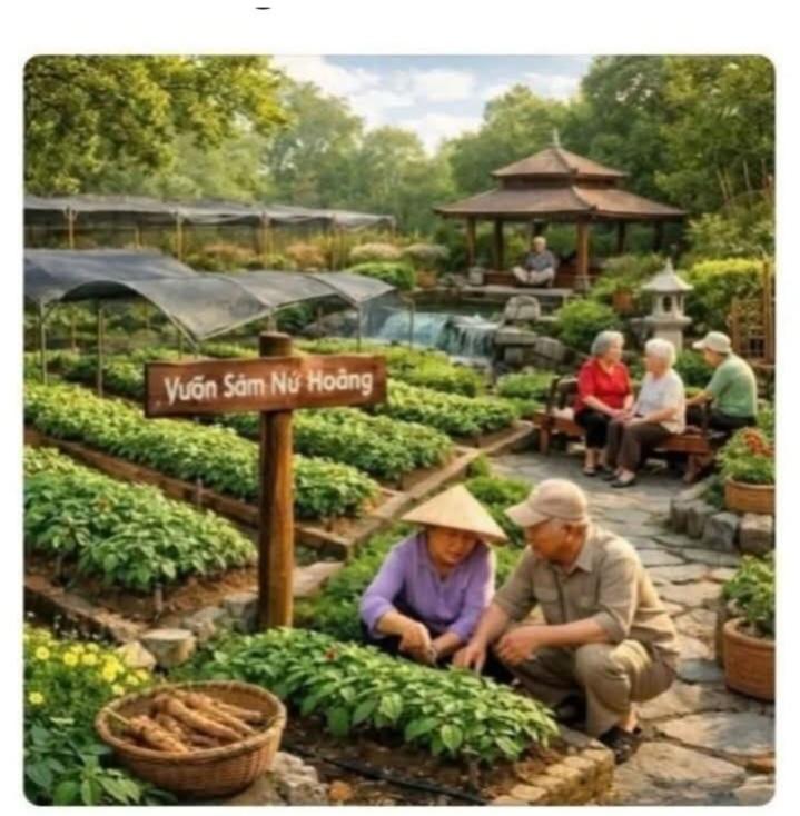 HNI 7/3/2026: VƯỜN SÂM NỮ HOÀNG TẠI KHU DƯỠNG LÃO HNI Nơi dưỡng sinh – phục hồi – kết nối giá trị sống Giữa không gian an nhiên của Khu Dưỡng Lão HNI, vườn Sâm Nữ Hoàng được kiến tạo như một biểu tượng của sức khỏe, sự tái sinh và trường thọ. Không đơn thuần là một khu trồng dược liệu, đây là trái tim sinh thái của toàn bộ khuôn viên – nơi hội tụ tinh hoa thiên nhiên và triết lý chăm sóc người cao tuổi bằng phương pháp thuận tự nhiên. 1. Ý nghĩa của Vườn Sâm Nữ Hoàng Sâm từ lâu được xem là “quốc bảo dược liệu”, đại diện cho sinh lực và sự bền bỉ. Tại HNI, Sâm Nữ Hoàng mang 3 tầng giá trị: • 🌿 Giá trị sức khỏe: hỗ trợ tăng đề kháng, cải thiện tuần hoàn, giảm mệt mỏi. • 🌿 Giá trị tinh thần: khu vườn xanh mát giúp người cao tuổi thư giãn, thiền định, tĩnh tâm. • 🌿 Giá trị cộng đồng: trở thành nơi giao lưu, chăm sóc cây, chia sẻ câu chuyện cuộc đời. Vườn không chỉ trồng sâm, mà còn gieo trồng niềm vui sống mỗi ngày. 2. Thiết kế sinh thái – dưỡng sinh toàn diện Vườn được quy hoạch theo mô hình: 🌱 Khu trồng Sâm trung tâm • Trồng theo luống hữu cơ, sử dụng phân vi sinh. • Hệ thống tưới nhỏ giọt tiết kiệm nước. • Che lưới điều tiết ánh sáng tự nhiên. 🌳 Khu thiền và tản bộ • Lối đi lát đá tự nhiên. • Ghế nghỉ dưới tán cây. • Không gian đọc sách – trà đạo – dưỡng tâm. 🌸 Khu trải nghiệm chăm sóc cây • Người cao tuổi có thể tham gia gieo trồng. • Hoạt động trị liệu làm vườn (garden therapy). • Kết nối con cháu trong những buổi tham quan cuối tuần. 3. Công dụng của Sâm Nữ Hoàng trong khu dưỡng lão Tại HNI, sâm được chế biến thành: • Trà sâm dưỡng sinh mỗi sáng. • Nước sâm mật ong tăng cường đề kháng. • Bột sâm bổ sung định kỳ theo hướng dẫn chuyên môn. • Quà tặng sức khỏe cho gia đình khi thăm người thân. Triết lý của HNI không phải chữa bệnh, mà là nuôi dưỡng sinh lực từ gốc rễ. 4. Mô hình kinh tế tuần Nguyễn Mậu Hoàng Vườn Sâm Nữ Hoàng còn tạo ra giá trị kinh tế bền vững: • Sản phẩm đóng gói mang thương hiệu HNI. • Trích một phần lợi nhuận tái đầu tư chăm sóc cư dân. • Tạo công việc nhẹ nhàng cho người cao tuổi còn khỏe. Đây là mô hình “Dưỡng Lão Chủ Động” – nơi người cao tuổi không chỉ được chăm sóc, mà còn được đóng góp giá trị. 5. Thông điệp từ HNI