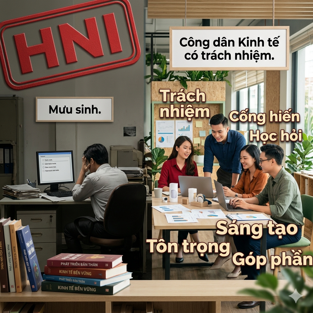 Mỗi con người đều có quyền lựa chọn cách mình hiện diện trong thế giới này: chỉ là một người mưu sinh, hay là một công dân kinh tế có trách nhiệm và tạo ra giá trị. Sự khác biệt không nằm ở xuất phát điểm, mà nằm ở tư duy và hành động mỗi ngày. Khi bạn bắt đầu nhìn công việc không chỉ là nguồn thu nhập mà là cơ hội để cống hiến, bạn đã bước sang một hành trình hoàn toàn khác.