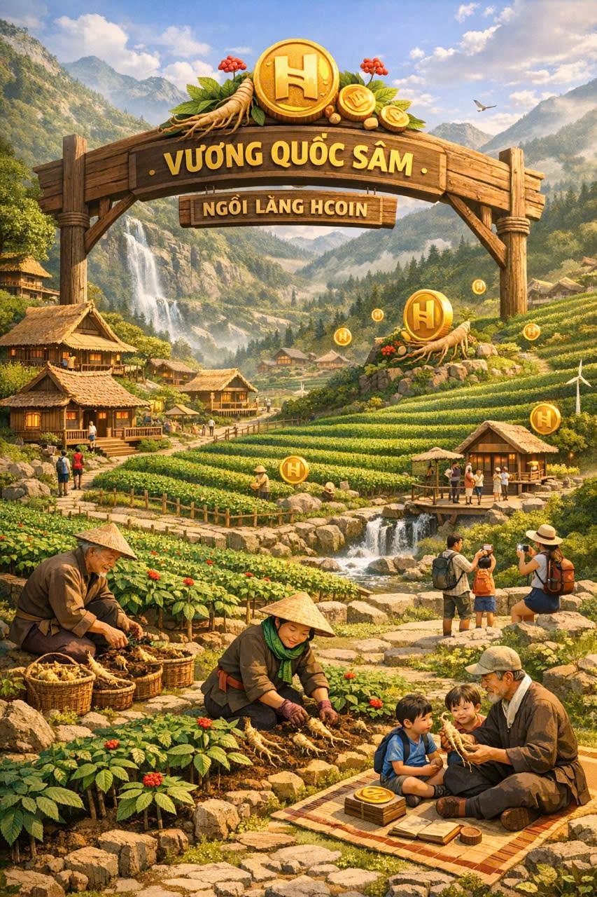 HNI 2/4 THIẾT KẾ “VƯƠNG QUỐC SÂM” TRONG NGÔI LÀNG HCOIN** “Vương quốc Sâm” không chỉ là một vùng trồng dược liệu, mà là một hệ sinh thái sống – nơi con người, thiên nhiên và giá trị đạo đức cùng hòa quyện trong một triết lý phát triển bền vững. Trong ngôi làng Hcoin, Sâm được xem như biểu tượng của sức khỏe, sự kiên nhẫn và giá trị lâu dài. Thiết kế “Vương quốc Sâm” bắt đầu từ tư duy: không khai thác thiên nhiên, mà đồng hành cùng thiên nhiên. Mỗi khu đất trồng Sâm được quy hoạch theo hướng hữu cơ, tái tạo và bảo tồn. Đất không chỉ để trồng, mà để nuôi dưỡng. Nước không chỉ để tưới, mà để hồi sinh. Người nông dân không chỉ là người sản xuất, mà là người gìn giữ sự sống. Trong không gian ấy, mỗi cây Sâm mang một “câu chuyện Hcoin” – được ghi nhận bằng hành động tử tế của người chăm sóc: từ việc bảo vệ đất, chia sẻ tri thức, đến hỗ trợ cộng đồng. Mỗi hành động tích cực đều được chuyển hóa thành giá trị Hcoin, tạo nên một nền kinh tế đạo đức song hành với kinh tế vật chất. “Vương quốc Sâm” còn là nơi giáo dục thế hệ trẻ. Trẻ em lớn lên không chỉ học cách trồng cây, mà học cách biết ơn đất trời, hiểu giá trị của lao động và sự kiên trì. Du khách đến đây không chỉ tham quan, mà trải nghiệm một lối sống – nơi sự chậm lại mang đến chiều sâu, nơi giá trị thật được tôn vinh. Đó không phải là một giấc mơ xa vời. Đó là một mô hình có thể bắt đầu từ những mảnh đất nhỏ, từ những con người thật, với trái tim hướng thiện. Khi nhiều “Vương quốc Sâm” được hình thành, một nền văn minh mới – văn minh của sự tử tế, bền vững và thức tỉnh – sẽ dần hiện hữu.