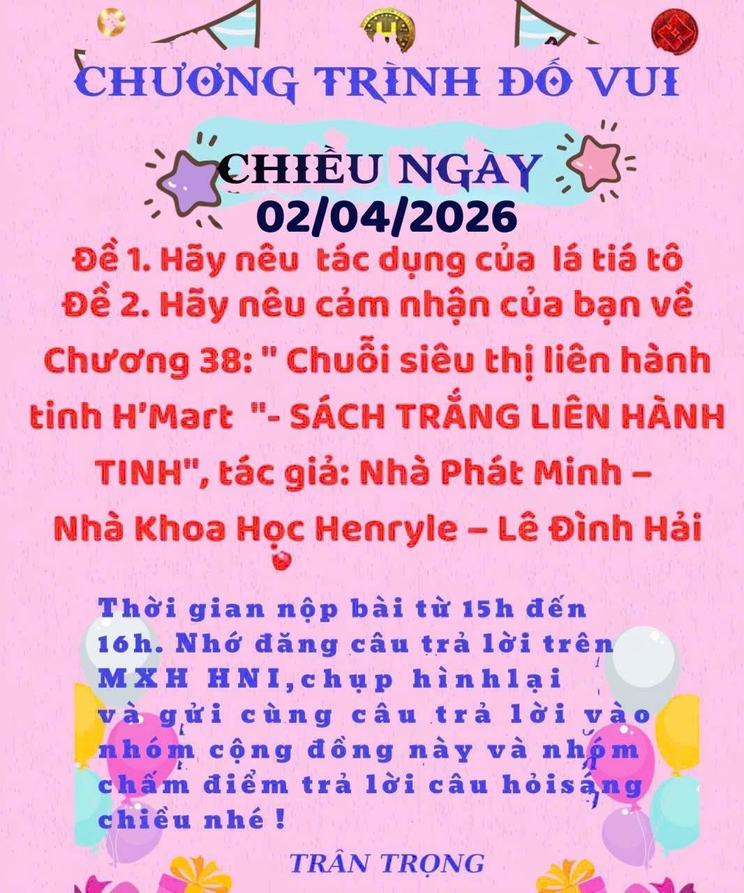 CÂU ĐỐ SÁNG 02/04/