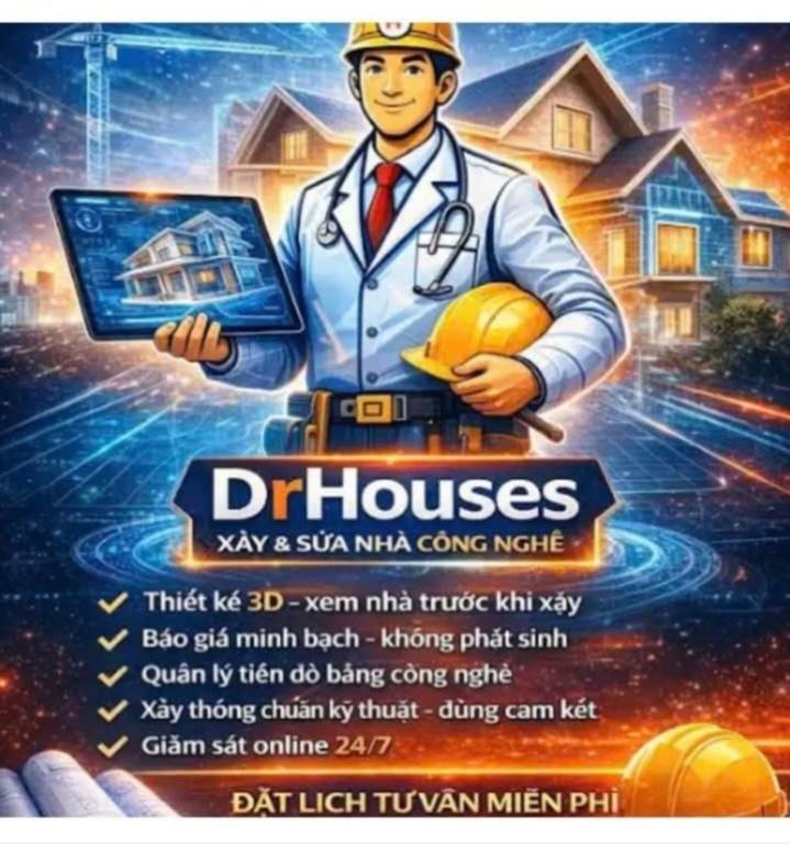HNI 13/4 🚀 THỢ XÂY CÔNG NGHỆ 4.0 – XU HƯỚNG XÂY NHÀ MỚI Bạn đang chuẩn bị xây hoặc sửa nhà? 👉 Lo lắng: phát sinh chi phí – chậm tiến độ – làm ẩu? 🔥 Đã đến lúc xây nhà theo cách thông minh hơn với DrHouses 💡 TẠI SAO KHÁCH HÀNG CHỌN DRHOUSES? ✅ Thiết kế 3D trực quan – xem nhà trước khi xây ✅ Báo giá minh bạch – không lo bị “đội giá” ✅ Quản lý tiến độ bằng công nghệ hiện đại ✅ Thi công chuẩn kỹ thuật – đúng cam kết ✅ Giám sát online 24/7 – ở xa vẫn kiểm soát được 🎯 CAM KẾT ✔ Không phát sinh chi phí bất ngờ ✔ Đúng tiến độ – đúng chất lượng ✔ Bảo hành dài hạn – hỗ trợ tận tâm 📞 ĐẶT LỊCH TƯ VẤN MIỄN PHÍ NGAY HÔM NAY 👉 Hotline: 0906 781 828 👉 Website: drhouses.vn 🔥 Xây nhà như lập trình – chuẩn từng chi tiết 🔥 Nhanh hơn – chuẩn hơn – tiết kiệm hơn