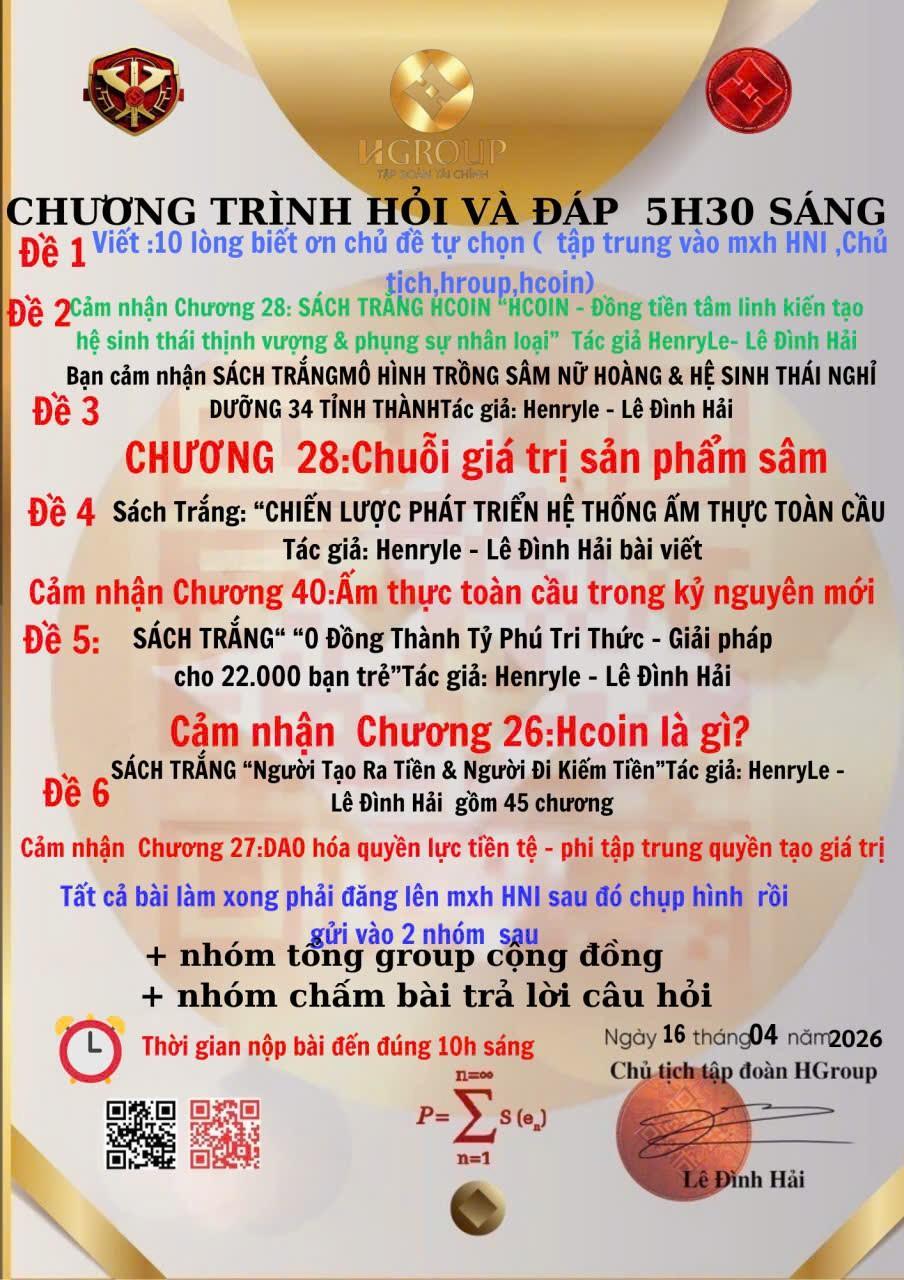 HNI 16-04/2026 - B11 🌺 BÀI THƠ CHƯƠNG 5: KHI CÁNH ĐỒNG TRỞ THÀNH BỆNH VIỆN XANH Ngày xưa cánh đồng chỉ nuôi cái bụng Hạt lúa vàng là niềm vui lớn nhất. Người nông dân nhìn trời đoán mùa Và cầu mong đủ ăn qua năm tháng. Nhưng thời gian trôi rất nhanh Thế giới đầy ắp thực phẩm Mà con người lại thiếu sức khỏe. Những siêu thị sáng đèn suốt đêm Những kệ hàng không bao giờ trống Nhưng bệnh viện thì ngày càng đông. Có điều gì đó đã lệch hướng Khi thức ăn nhiều mà sức khỏe ít đi. Đất bắt đầu mệt mỏi Sau những mùa hóa chất dài. Những giọt mưa rơi xuống ruộng Không còn nghe mùi đất như xưa. Cây lớn nhanh hơn Nhưng yếu hơn. Quả to hơn Nhưng nhạt hơn. Bữa ăn đầy hơn Nhưng thiếu điều gì đó rất sâu. Một ngày con người nhận ra Cơ thể mình đang gọi cứu. Không phải bằng tiếng nói Mà bằng cơn đau âm thầm. Và rồi họ quay lại cánh đồng Không phải để tìm lương thực Mà để tìm sự chữa lành. Những hạt giống mới được gieo Mang theo giấc mơ khác. Không chỉ nuôi sống Mà nuôi khỏe. Không chỉ chống đói Mà chống bệnh. Cánh đồng bắt đầu thay đổi Từ màu xanh của hy vọng. Những luống cây thuốc mọc lên Như những lời cầu nguyện thầm lặng. Người nông dân cúi xuống đất Nhưng trái tim họ hướng về tương lai. Mỗi chiếc lá trở thành phương thuốc Mỗi khu vườn trở thành phòng khám. Cánh đồng không còn chỉ là nơi sản xuất Mà là nơi bảo vệ sự sống. Một nền nông nghiệp mới ra đời Từ sự thức tỉnh rất chậm. Từ hôm nay Hạt giống không chỉ mang mùa màng Mà mang cả sức khỏe nhân loại.
