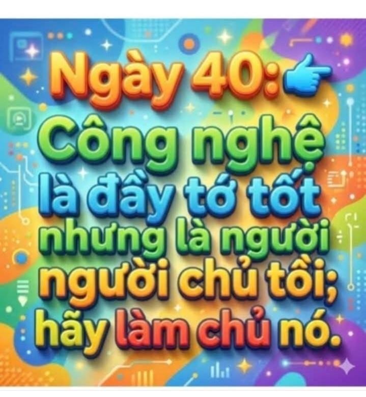 HNI 18/04 Chào các bạn! Rất vui được tiếp tục đồng hành cùng các bạn trong hành trình ý nghĩa này. Chúc các bạn một ngày mới thật nhiều cảm hứng và làm việc hiệu quả nhé!👍 Dưới đây là nội dung thông điệp cho **Ngày 40**, 💡 THÔNG ĐIỆP HỌC HỎI TRONG THỜI ĐẠI MỚI **Ngày 40: Làm chủ công nghệ** > **"Công nghệ là đầy tớ tốt nhưng là người chủ tồi; hãy làm chủ nó."** >Góc nhìn suy ngẫm:** * **Công nghệ là "đầy tớ" tốt:** Khi chúng ta sử dụng công nghệ như một công cụ để tối ưu hóa công việc, mở rộng kiến thức và kết nối giá trị, nó mang lại sức mạnh phi thường giúp ta đi xa hơn và nhanh hơn. * **Công nghệ là "người chủ" tồi:** Nếu chúng ta để các thuật toán, mạng xã hội và sự tiện nghi dẫn dắt, ta dễ rơi vào trạng thái thụ động, mất tập trung và dần đánh mất bản sắc cá nhân cũng như khả năng tư duy độc lập. * **Hãy làm chủ nó:** Sự tỉnh thức trong việc lựa chọn công cụ và phân bổ thời gian sử dụng là chìa khóa để giữ vững quyền kiểm soát cuộc sống của chính mình. Bài học thực hành:** 1. **Sử dụng có mục đích:** Trước khi cầm điện thoại hay mở máy tính, hãy xác định rõ việc cần làm. 2. **Thiết lập giới hạn:** Dành những khoảng thời gian "không công nghệ" trong ngày để tái tạo năng lượng và kết nối thực tế. 3. **Học hỏi không ngừng:** Luôn cập nhật kiến thức mới để công nghệ phục vụ cho sự phát triển của bản thân và cộng đồng. **Rèn luyện mỗi ngày – Nâng tầm vị thế!**