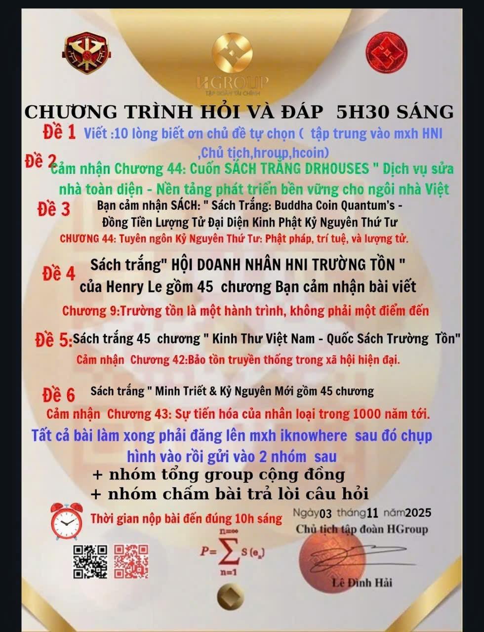 Hôm nay ngày 3/11/2025, con xin dâng lên Ngài lời cầu nguyện chân thành cho HGROUP - HCOIN và toàn thể cộng đồng của chúng con.