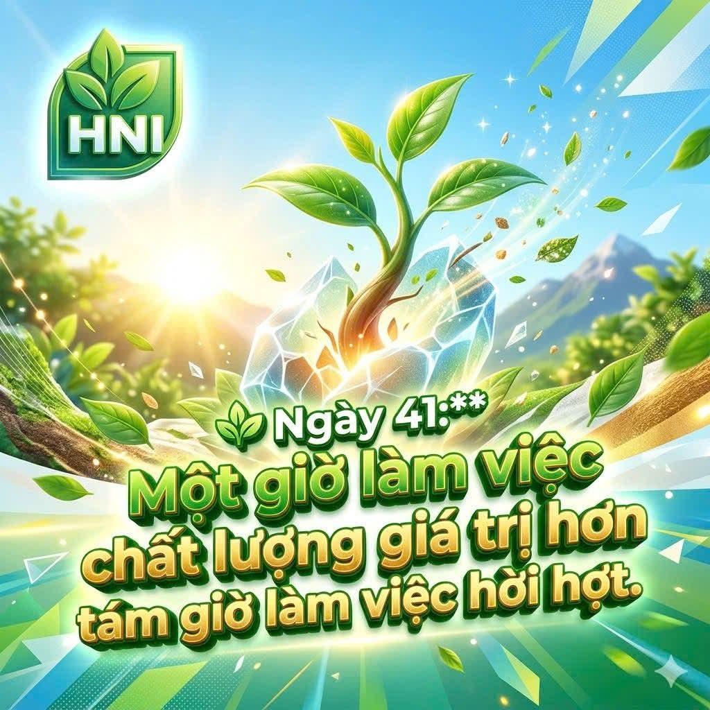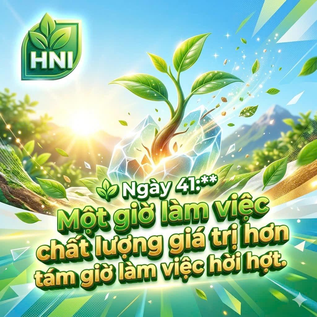 HNI 15/4 🌿 Ngày 41 - Học cách làm việc bằng cả trái tim. Bạn thân mến, có bao giờ bạn kết thúc một ngày dài mệt mỏi nhưng nhìn lại chẳng thấy kết quả đâu không? Đó là khi chúng ta đang bị "bào mòn" bởi sự hời hợt. Sự chuyển mình thực sự bắt đầu khi ta trân trọng từng giờ phút, dồn toàn bộ tâm trí vào việc mình làm. Một giờ chất lượng thôi là đủ để xoay chuyển cục diện. Cùng HNI hướng tới một ngày làm việc tràn đầy giá trị nhé! ☀️ #HNI #SongGiaTri #ChuyenMinhMoiNgay #Ngay41